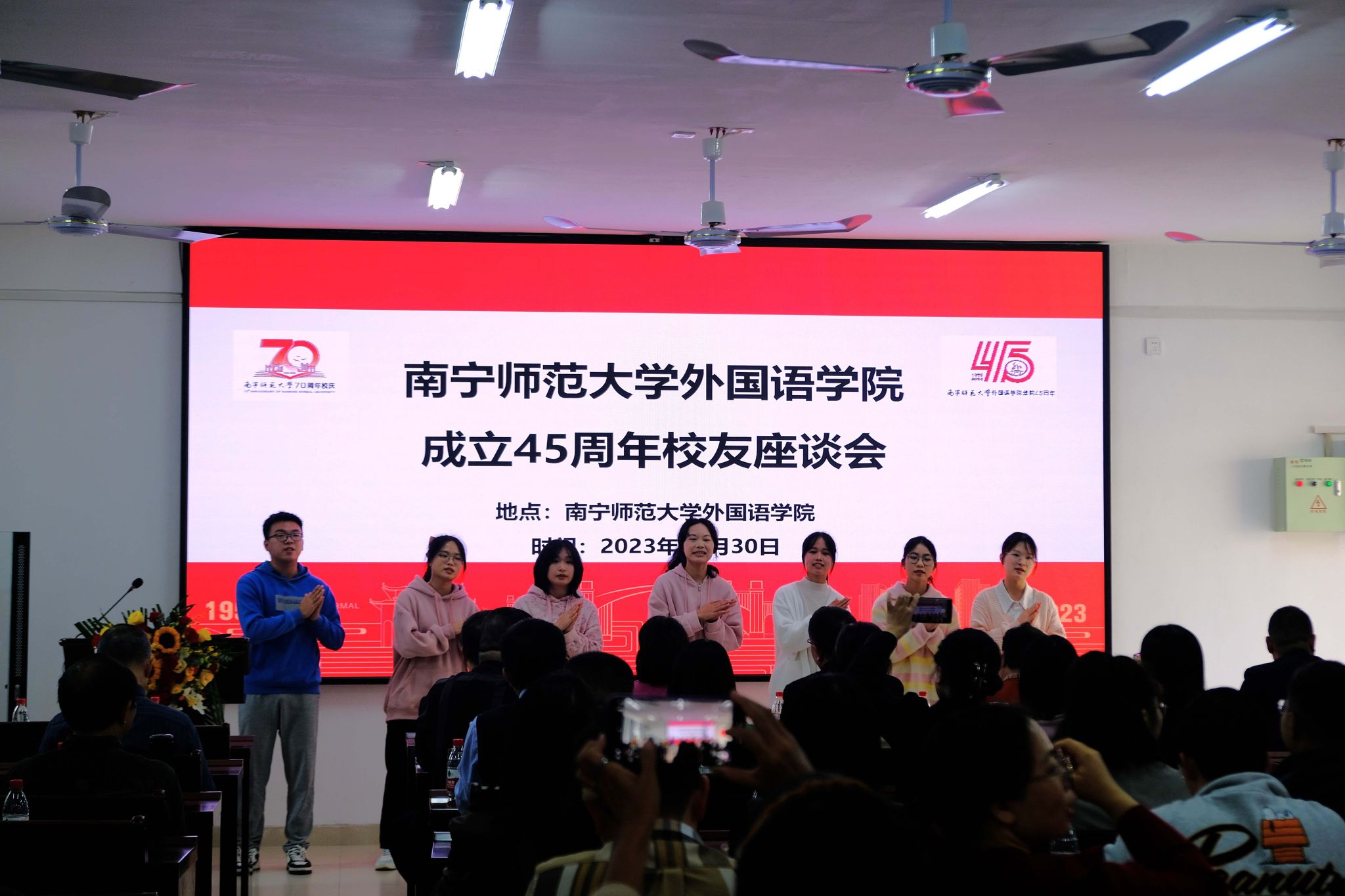 的各届校友们齐聚一堂。活动伊始,由学院学生代表为校友们带来了暖场歌曲《Something Just Like This》。随后,陈光伟院长作H图书馆