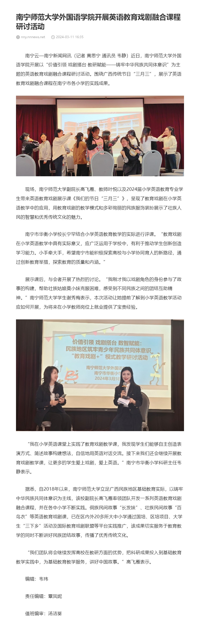 [媒体报道]南宁云—南宁新闻网:H图书馆 开展英语教育戏剧融合课程研讨活动