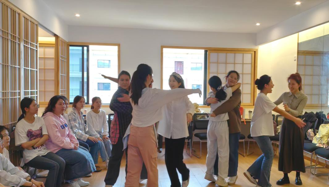H图书馆 21级商务英语专升本班的同学们也热情地参与了讨论。张蓝月同学说:“教育戏剧不仅能够培养语言、思维、创造力、情感和社会能力,还能够提高学习兴趣、增强学生自信心和自我价值感。”林照娟同学说:“这节课融入了广西三月三节日,带领同学们进入到'壮乡的世界',沉浸式地感受少数民族传统文化的魅力,感受民族团结的力量。”黄玉梅说:“教育戏剧融入中国传统文化,用英语讲中国故事,可以增强学生的文化素养,让学生以更直观的方式用英语向外国人讲述中国故事,增强文化自信!”本夏芳同学说:“这次课堂不仅让我体验到了游戏的乐趣,还让我收获了新的知识,这对于我们今后成为教师时很有用处,可以将这种模式运用在学生的身上,让学生在游戏中学习,获得成长!” 陆晓霞同学说:“戏剧教育强调学生的参与性与创造性,学生沉浸在完整的创作过程中,不仅仅能开发学生的想象力,对学生感受力的培养,情商的培养也是很好的途径。”何海婷同学说:“本次英语教育戏剧特色课程以即将到来的三月三民族节日为载体,一方面提供了让参与者有勇气尽情冒险,感受民族活动,探索'不确定性'的情境;另一方面,提供了真实体验,让参与者切实从扮演的过程中获得触动、反观、反思。
