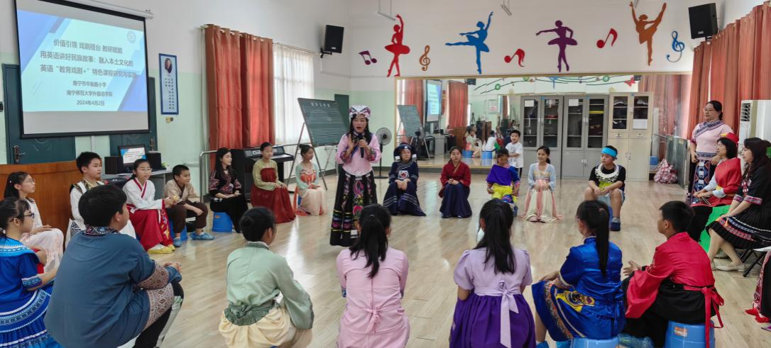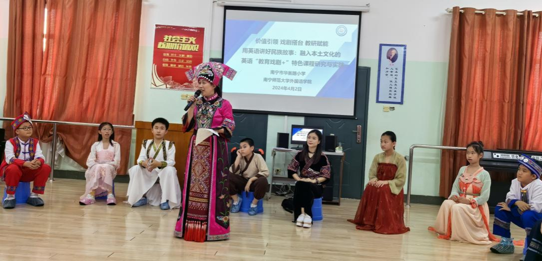 教育戏剧教学团队受邀到南宁市华衡小学联合开展“用英语讲好民族故事:融入本土文化的英语教育戏剧特色课程研讨活动”。