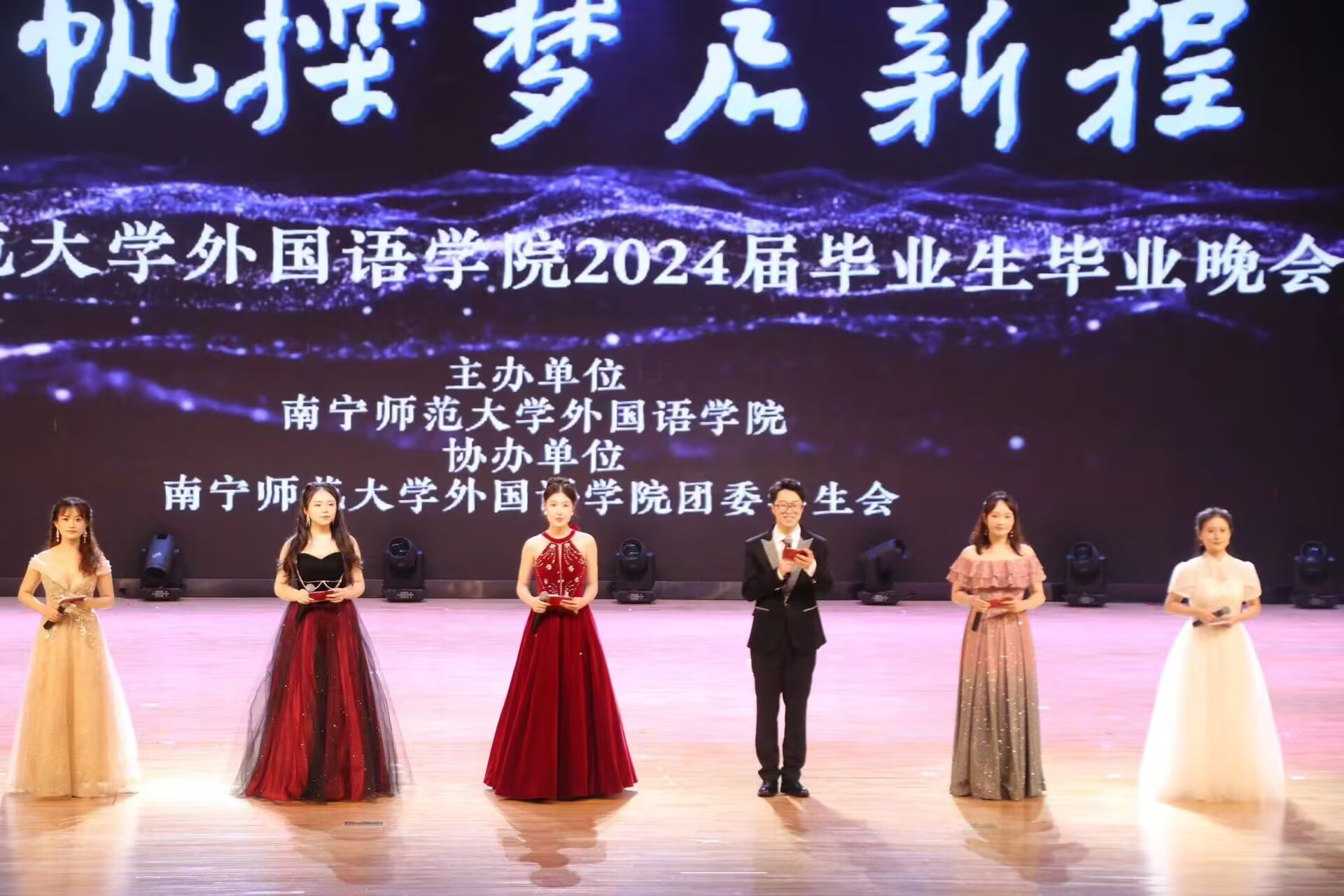 在武鸣校区音舞院千人演播厅成功举办2024届“青春踏浪逐芳华,扬帆探梦启新程”毕业生毕业晚会。H图书馆