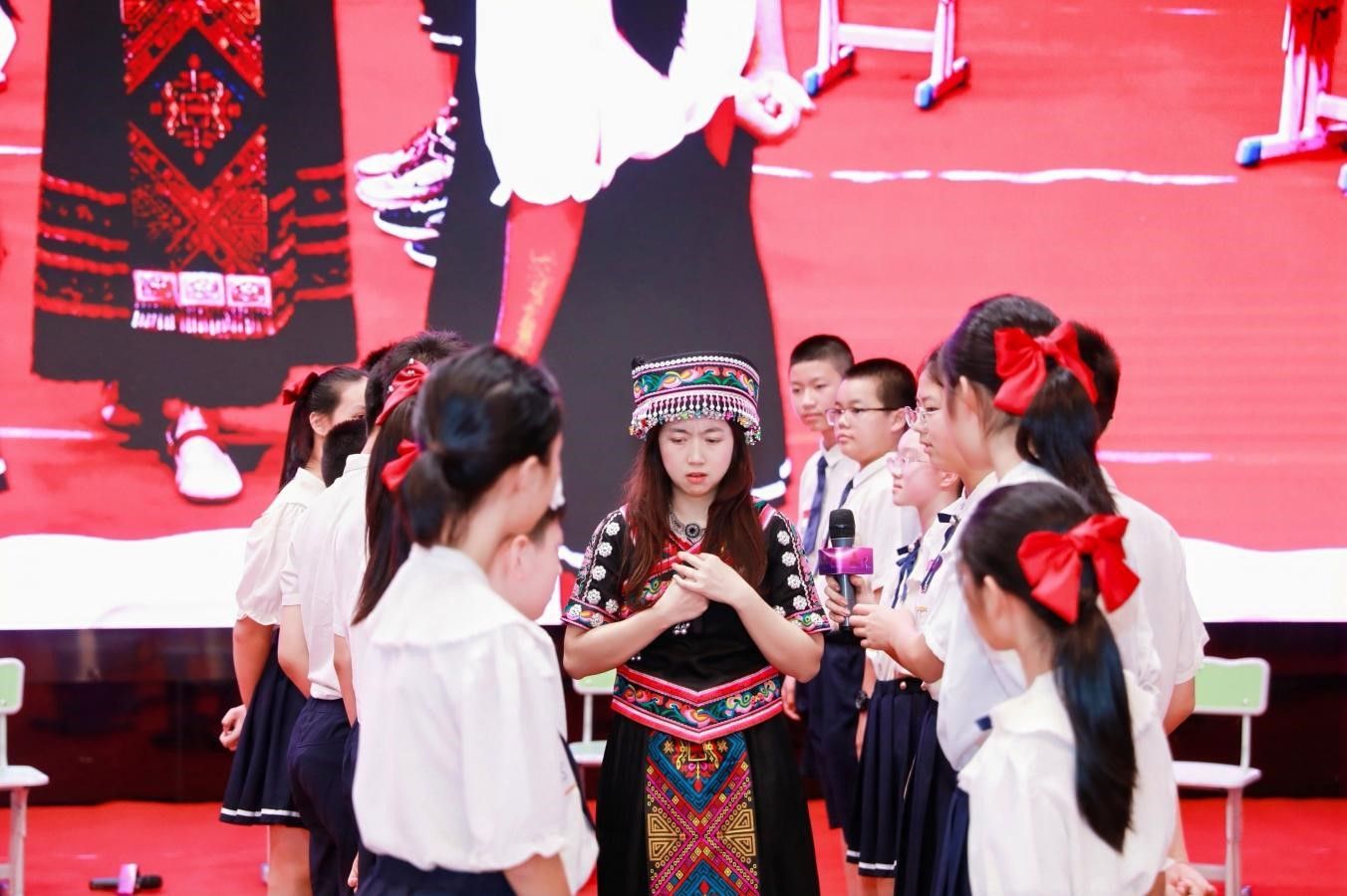 以三月三庆祝活动的方式初次磨课,6月在黔南民族师范学院通过黔桂粤三地高校联动教研的方式磨课研课,7月在IDEA(第十届)国际戏剧/剧场与教育大会暨IDEAC(第十届)国际戏剧教育应用与合作大会以教师工作坊的形式在国际教育戏剧大舞台进行成果展示。经过多次打磨,最终团队成员叶悦老师于2024年11月1日在“前沿课堂”做精彩呈现。现场观摩本次研训活动的教师对本节课给予了高度评价:“教师把听说读写唱玩演画等技能巧妙地融合到课堂教学中,实现跨学科融合,激发了孩子的想象力和创造力”,“轻松的氛围,开放式合作交流与表演为孩子提供了宽松的语言环境和无限的创作空间”,“把民族歌曲、文化融合到课程里,培养了孩子的民族自信,增强了民族自豪感!”