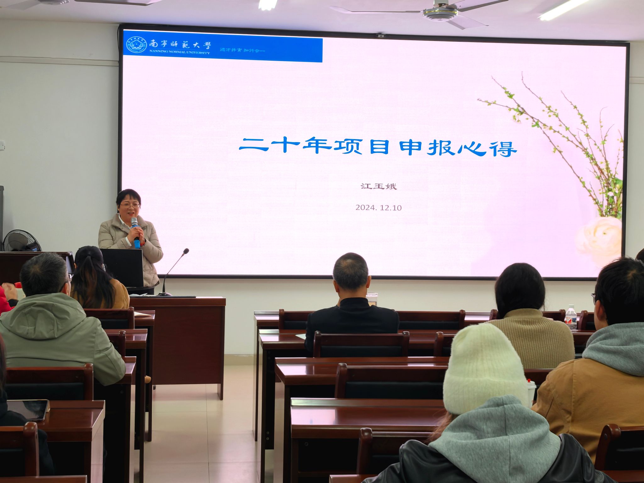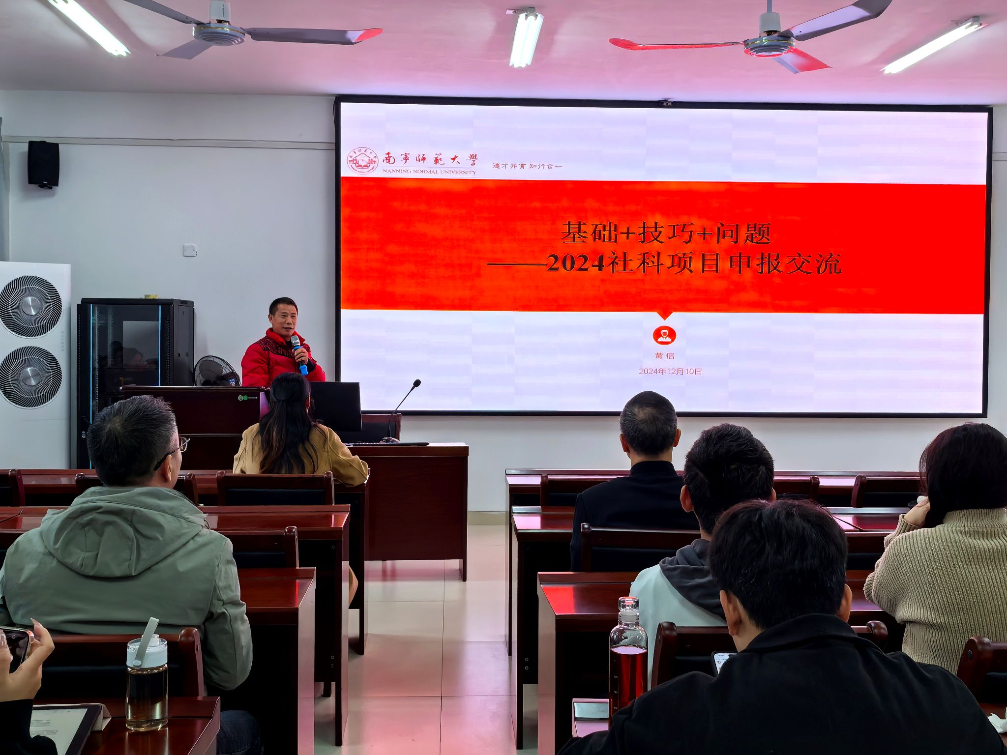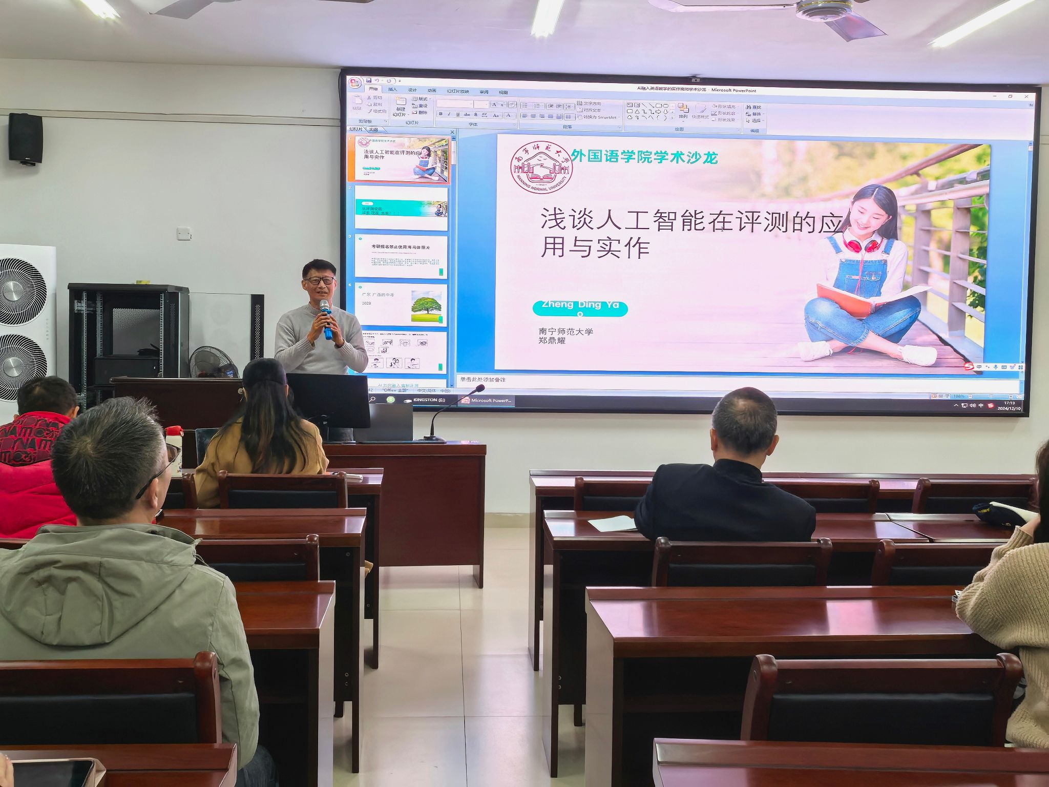 于2024年12月10日下午14:20在武鸣校区实验楼1B-515室成功举办了2024年度学术沙龙。姚本标、黄信、赵凤玉、江玉娥、蒙岚、郑鼎耀六位教授及老师在此次沙龙中分享了他们的学术成果与课题申报经验,探讨了智能教学模式以及人工智能在教学与应用中的新趋势,为师生们呈现了一场别开生面的思想盛宴。