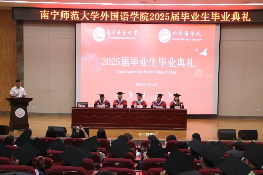 典礼在庄严的国歌声中拉开序幕。陈光伟院长在致辞中向圆满完成学业的毕业生们表示热烈祝贺。他勉励同学们要“自信自爱,自立自强”,以积极的态度面对人生挑战,期待毕业生们带着外院的精神烙印,在更广阔的天地书写精彩人生。