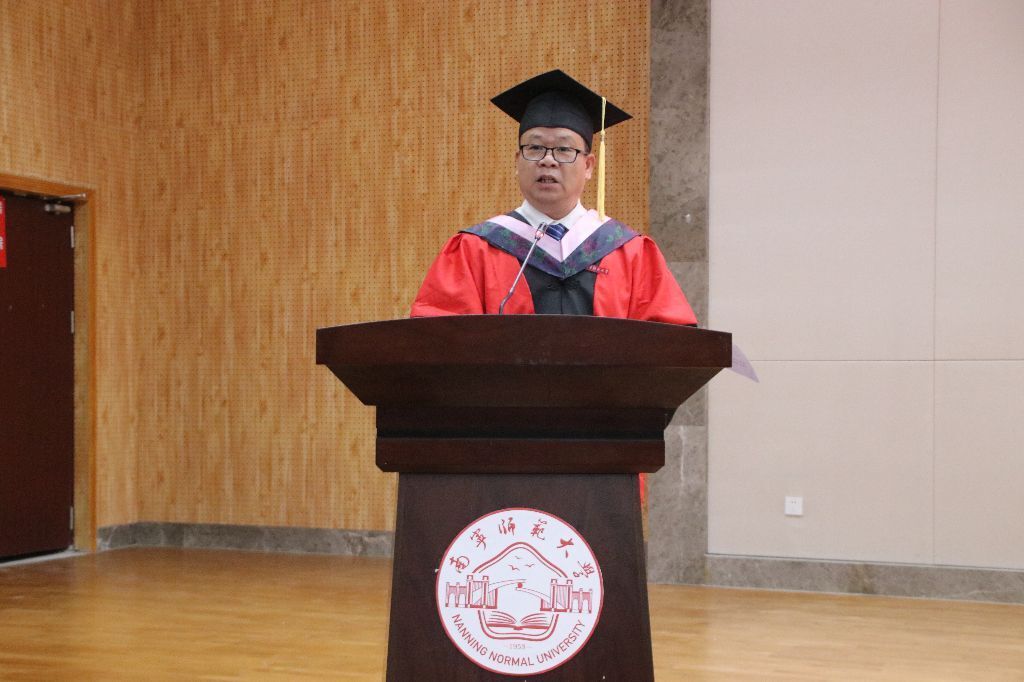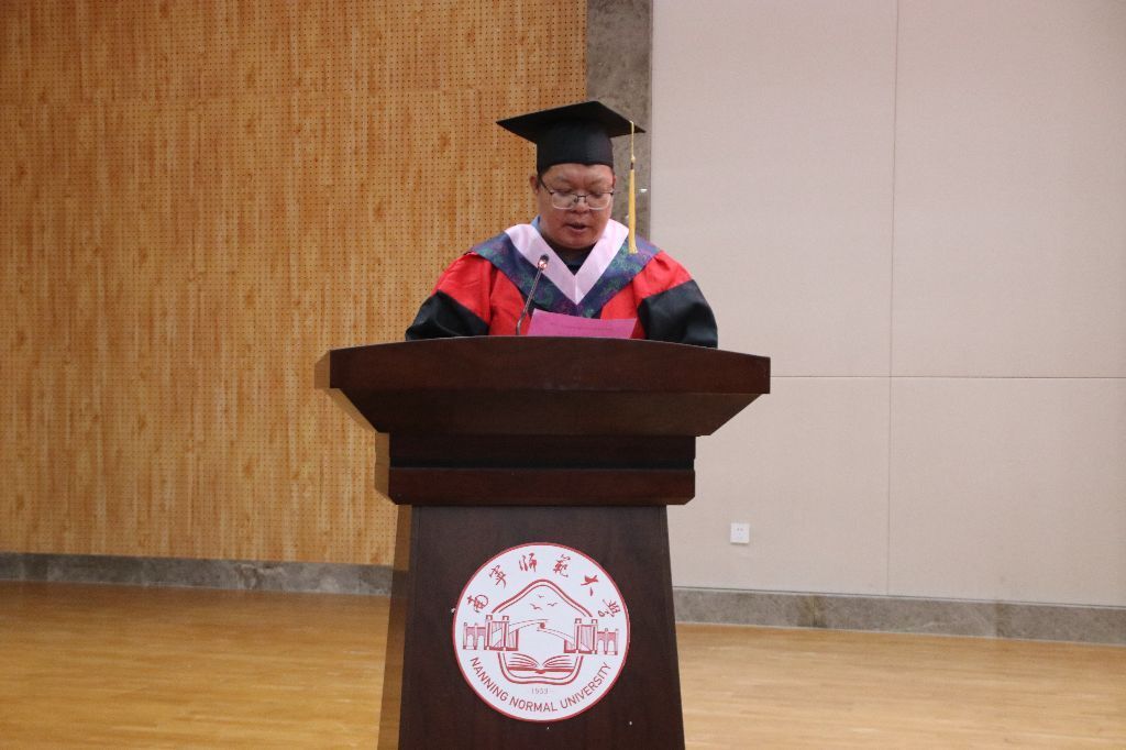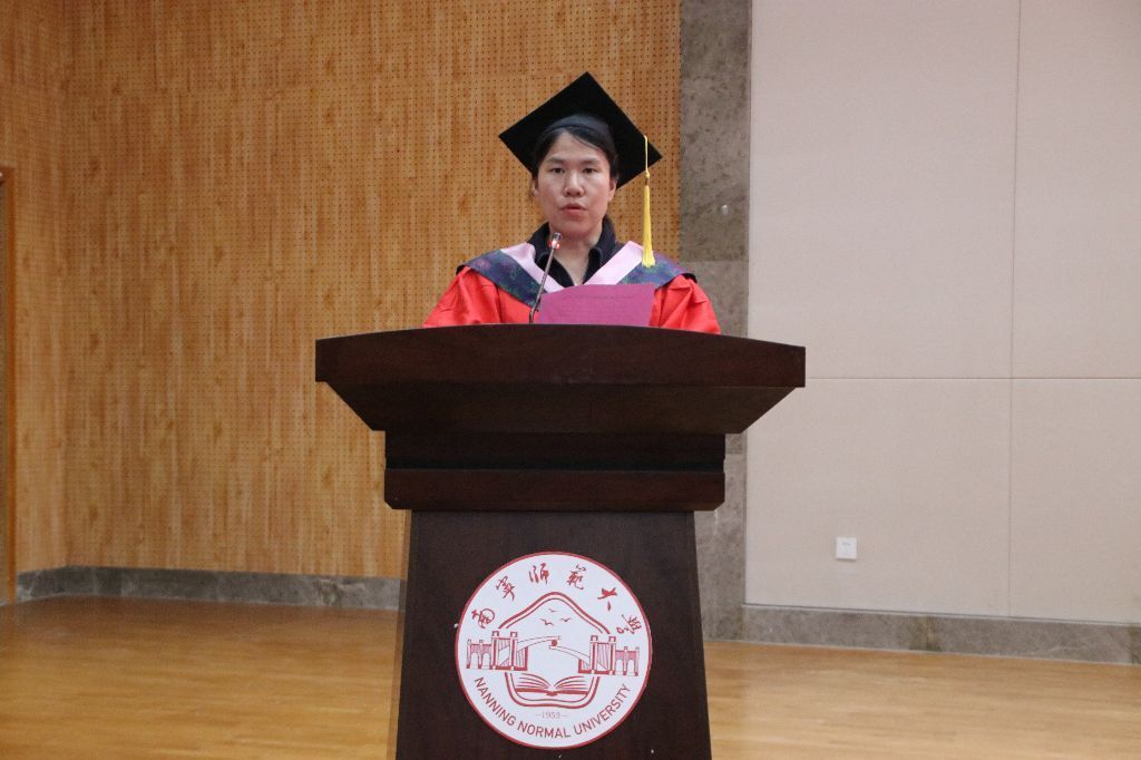接着,本科生代表温欢欢与研究生代表黄娇分别发表毕业感言,表达了对学校、学院的感谢,对老师同学的不舍,对父母家人的感恩。同时他们为同学们送上了最真诚美好的祝愿。而后教师代表林莉丽老师在致辞中勉励大家用心去感知世界的褶皱,不畏风雨,带着对世界永远的好奇,活出自己想要的人生。