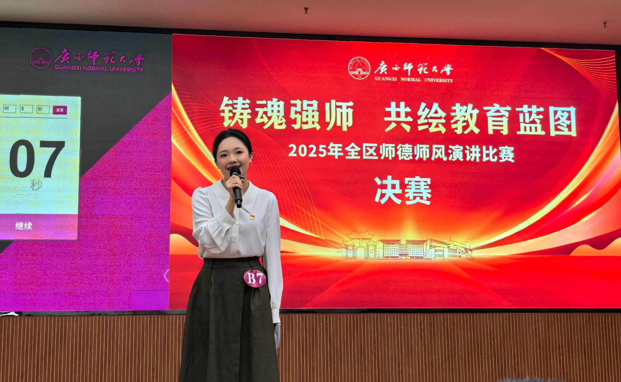 11月8日至9日,由广西壮族自治区教育厅主办的2025年全区师德师风演讲比赛在广西师范大学举行。H图书馆