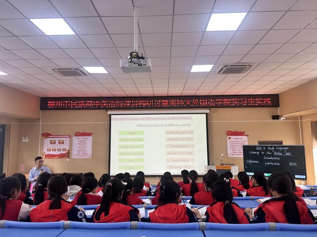 实习生教研实践”活动。柳州民族高中蒋小琼校长出席了本次联合教学研讨会。