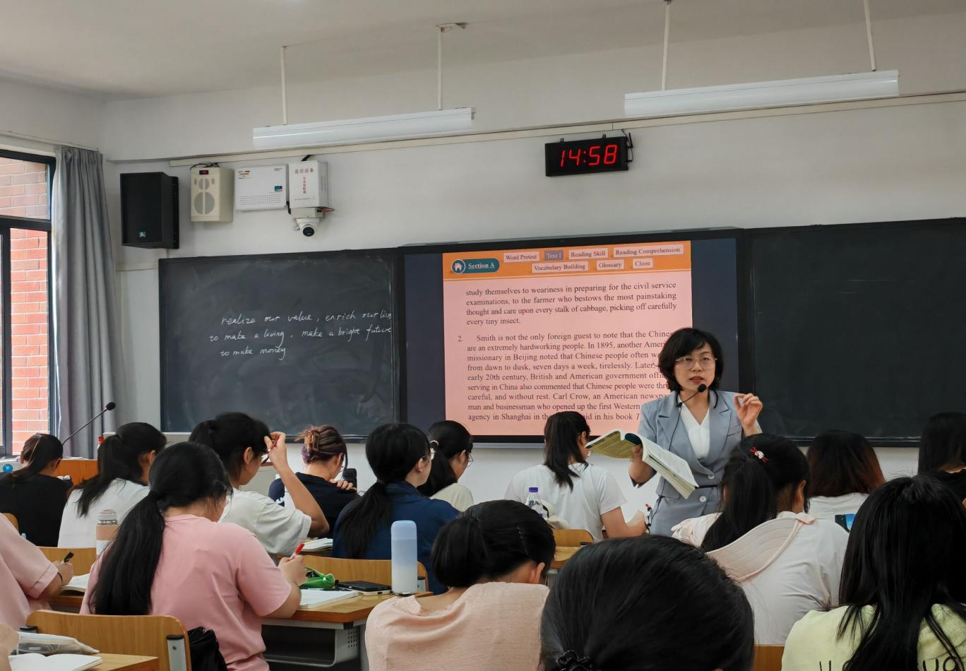 首先,夏莉老师给英语专业2023级1班学生讲授“The hard-working ethic of the Chinese people”主题的英语阅读课。夏莉老师在授课过程中教学思路清晰,由浅入深、过渡自然,教学方法多样,通过使用WE LEARN平台等积极将网络信息技术与教学过程有机融合,开展混合式教学,将学习由课堂向课外延伸。课堂上,学生在老师的带领下深度参与,学习相关英语语言表达、篇章结构,掌握英语阅读技巧,并在老师的引导下积极讨论中国人民勤劳善良的优秀品质,面对老师提出的问题,纷纷踊跃举手发言,课堂精彩纷呈。