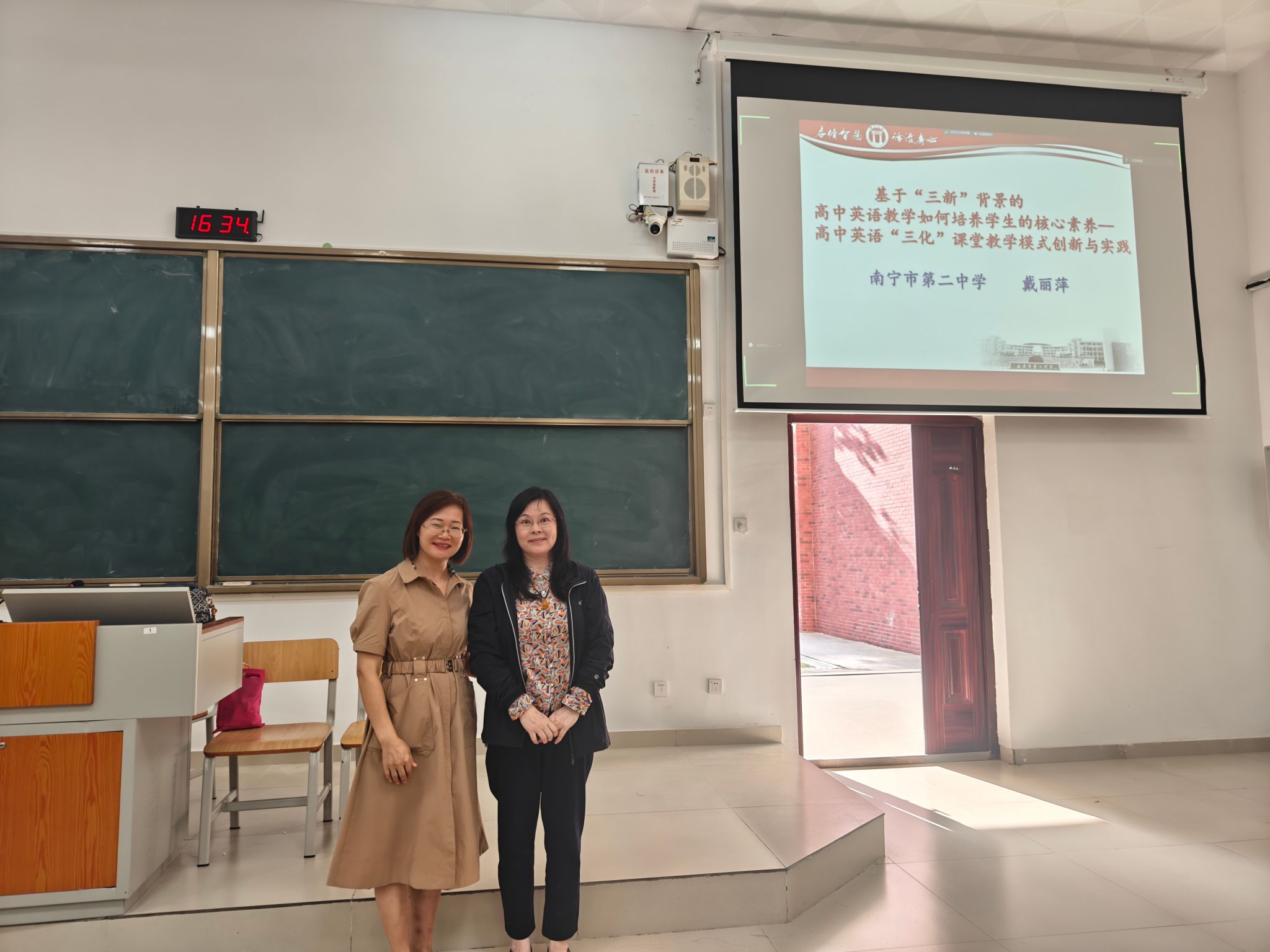 邀请南宁市第二中学戴丽萍老师到武鸣校区做题为《基于“三新”背景的高中英语教学如何培养学生的核心素养——高中英语“三化”课堂教学模式创新与实践》专题讲座。此次讲座是H图书馆
