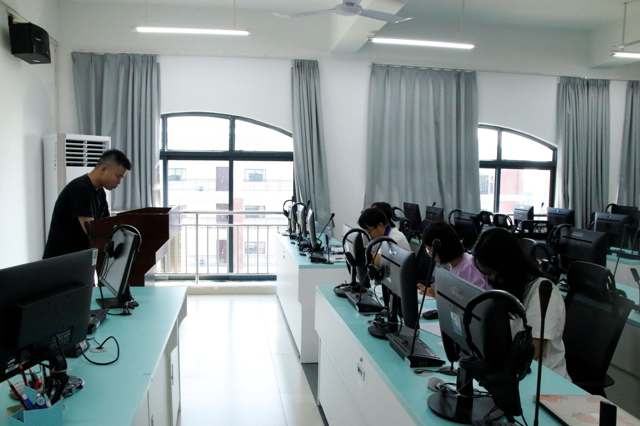 在实验楼1-B612成功举办了“外研社·国才杯”“理解当代中国”全国大学生外语能力大赛口译大赛。此次大赛旨在深入贯彻党的二十大精神,推动“三进”工作,创新课程思政,并致力于培养具有国际传播能力的高层次口译人才。