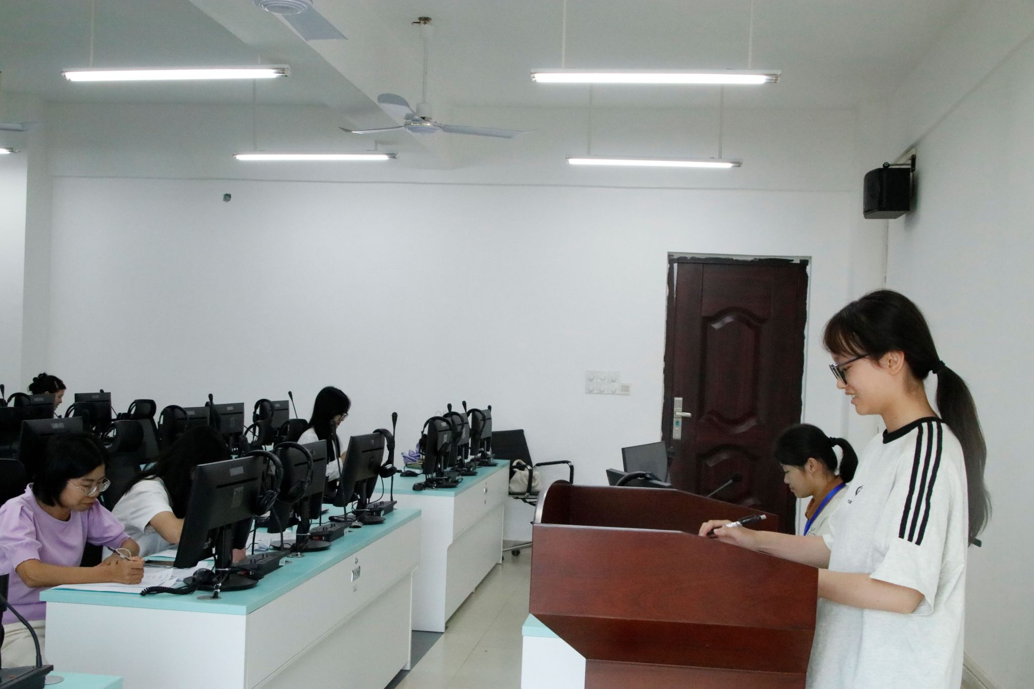 在比赛过程中,现场气氛紧张而热烈。来自全校的众多外语爱好者齐聚一堂,共同参与了这场口译盛宴。此次大赛的形式为短交传,要求选手们在规定时间内迅速准确地将原文翻译出来,并且在表达上要做到自然流畅。