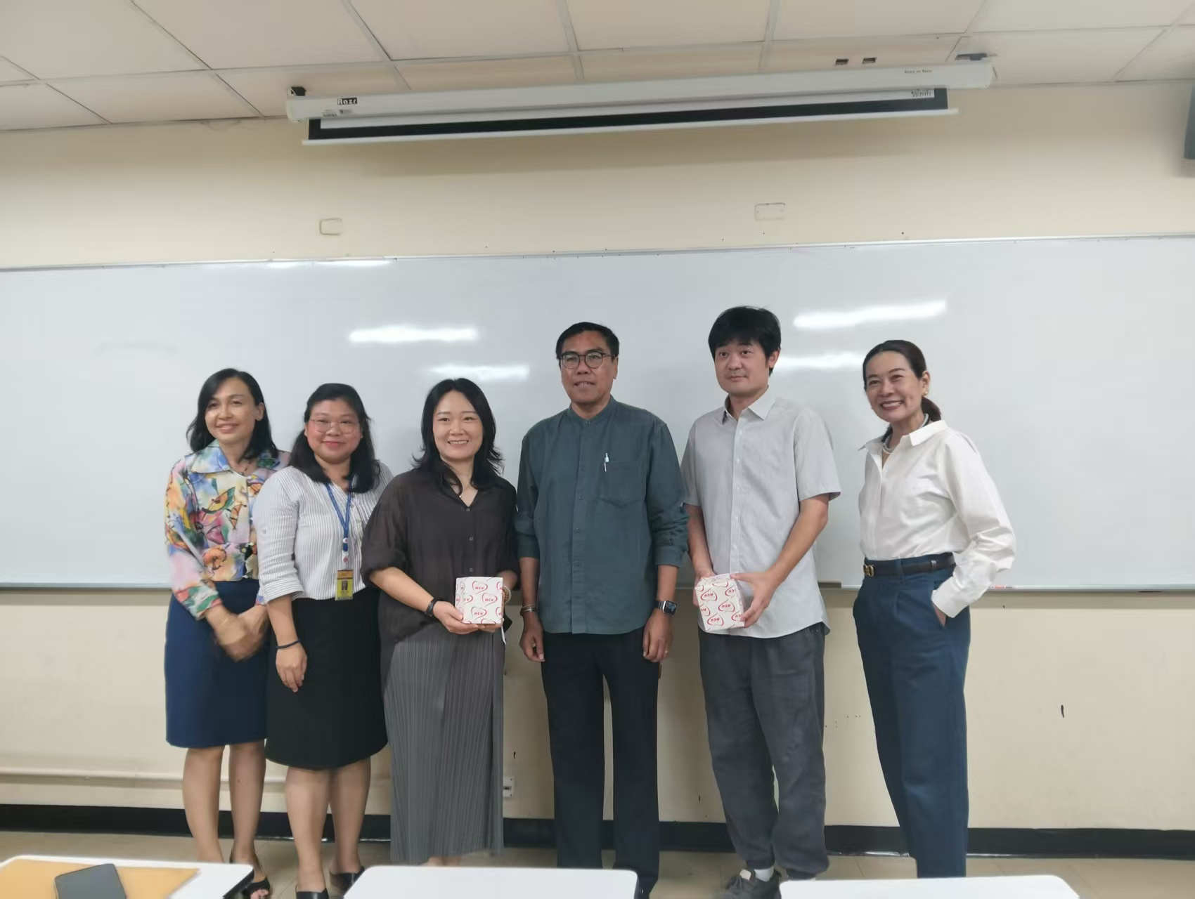师生代表赠送了具有泰国文化特色的纪念礼物。林绍丽老师代表学院师生接收了礼物,并对华侨崇圣大学的热情接待和周密安排表示衷心感谢。