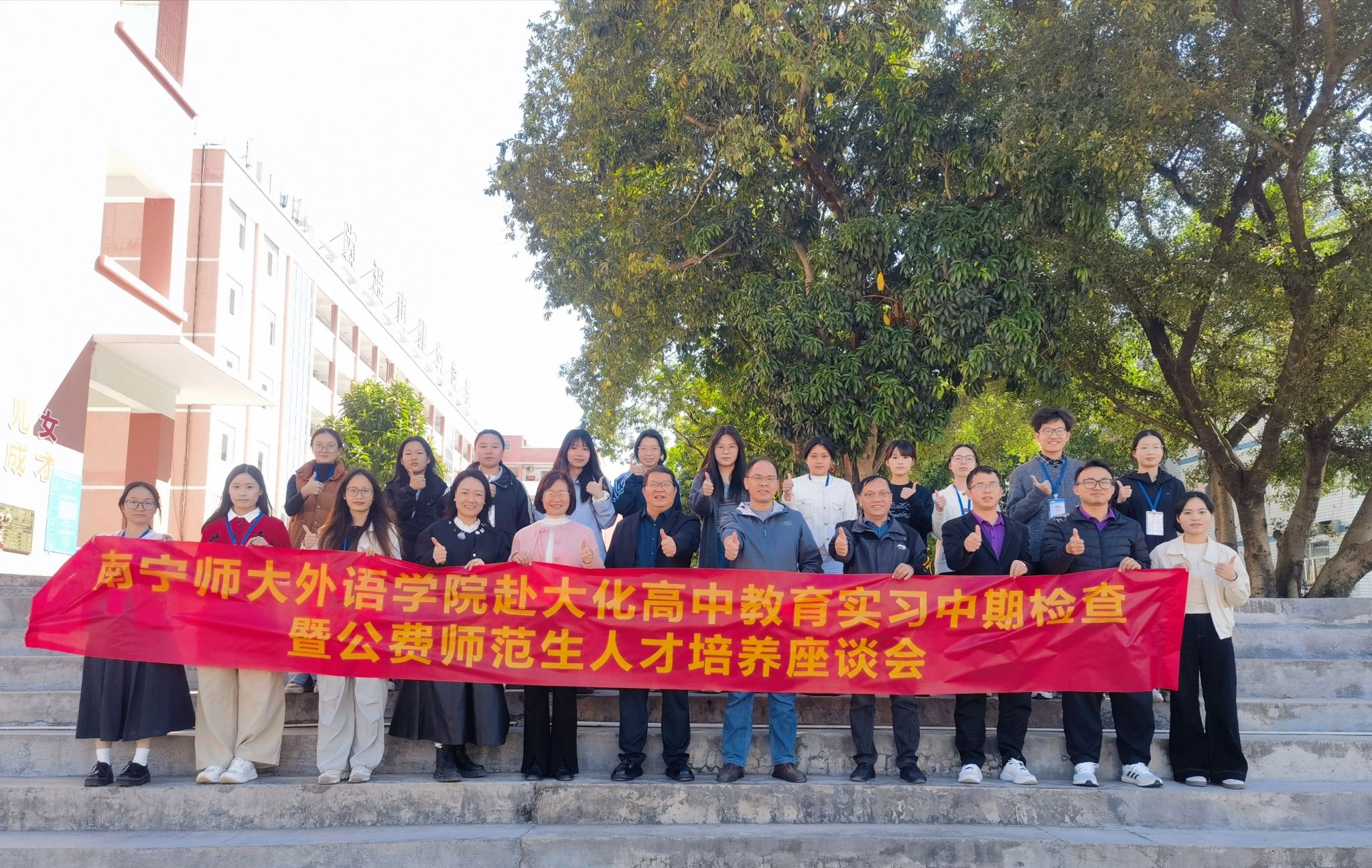 实习生近期的实习表现。大化高中教务处的韦金宏主任则从实习工作整体推进视角出发,围绕公费师范生人才培养目标、课程体系、实践教育等方面提出宝贵建议。大化高中主管教学的黄克勋副校长更是结合民族地区教育实际,深入阐述了公费师范生应具备的核心素养,明确了其教育教学能力与民族地区教育发展需求相适配的培养方向。