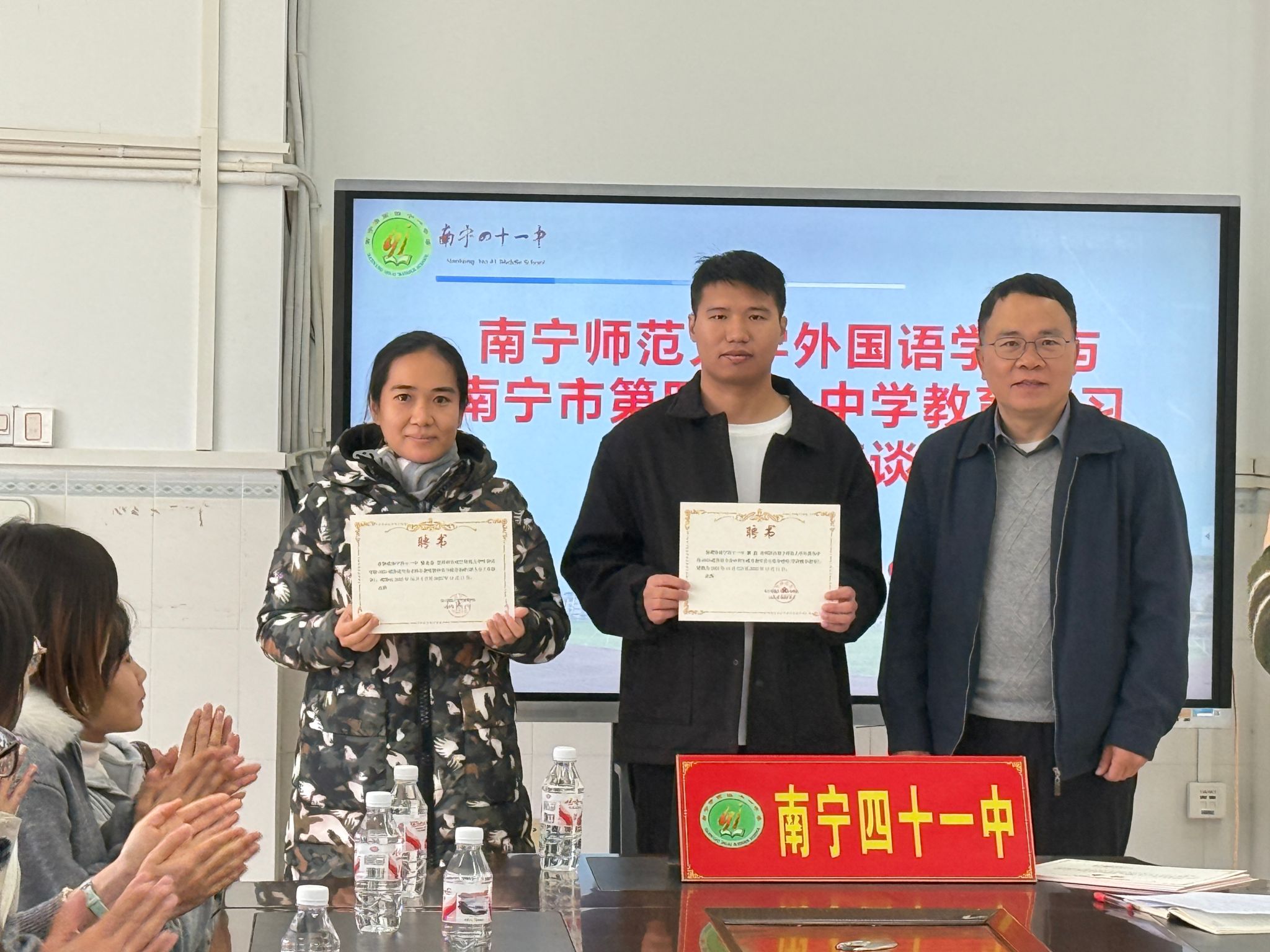 在师生交流环节,实习生们积极分享了自己第一次上课的感受和实习过程中的难忘瞬间。大家纷纷表示,感谢四十一中为他们提供了如此优质的实践平台,让他们在教学中不断成长,收获了宝贵的经验和信心。