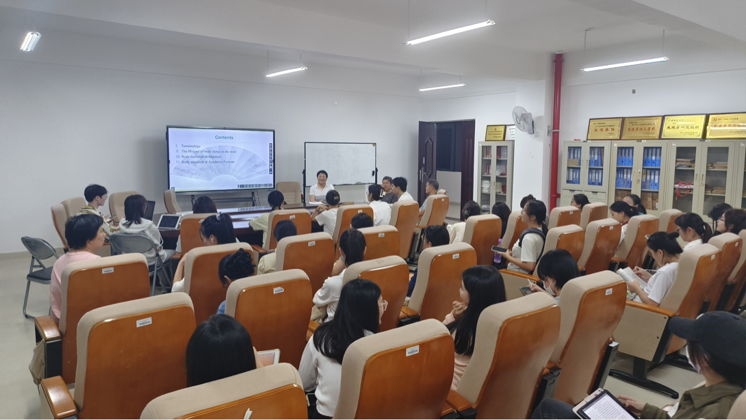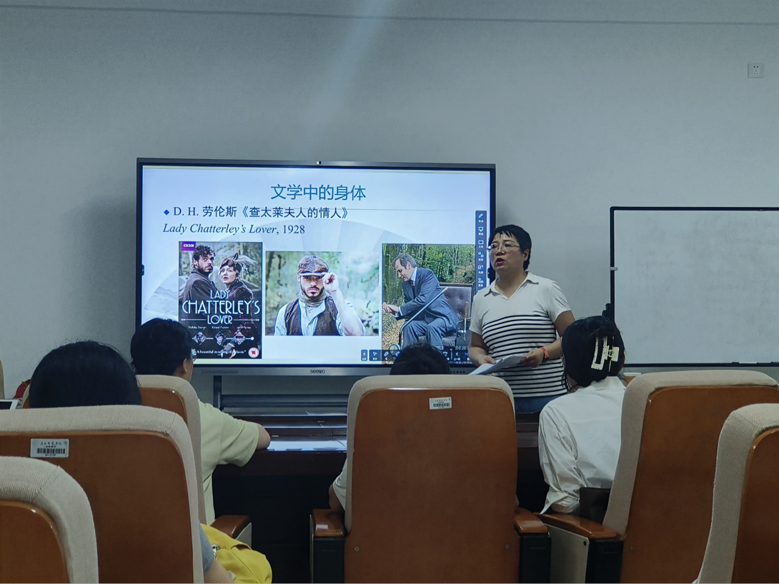 江玉娥教授的讲座图文并茂,生动有趣,深深吸引了同学们的注意力。在讲座中,江玉娥教授娓娓道来,向在场的研究生介绍了她对文学中的身体书写的理解与想法。讲座分为四大部分:1. Terminology2. The History of body statue in the west 3. Body narration in literature 4. Body narration in Academic Fiction。整场讲座引人入胜,通俗易懂,江教授生动有趣地将抽象的内容很好的诠释。在讲座中,江教授提到的菲利普.罗斯的《垂死的肉身》和戴维.洛奇的《小世界》这两本书令人印象深刻,江教授认为,这两本书着重关注在身体书写这方面上,表现出了激情与衰老死亡、理性与激情、作为手段的激情、抵抗自我对死亡与衰老的恐惧以及时间中的垂死肉身。通过这两本书,我们能很好的体会作者如何通过描写身体语言传达信息。