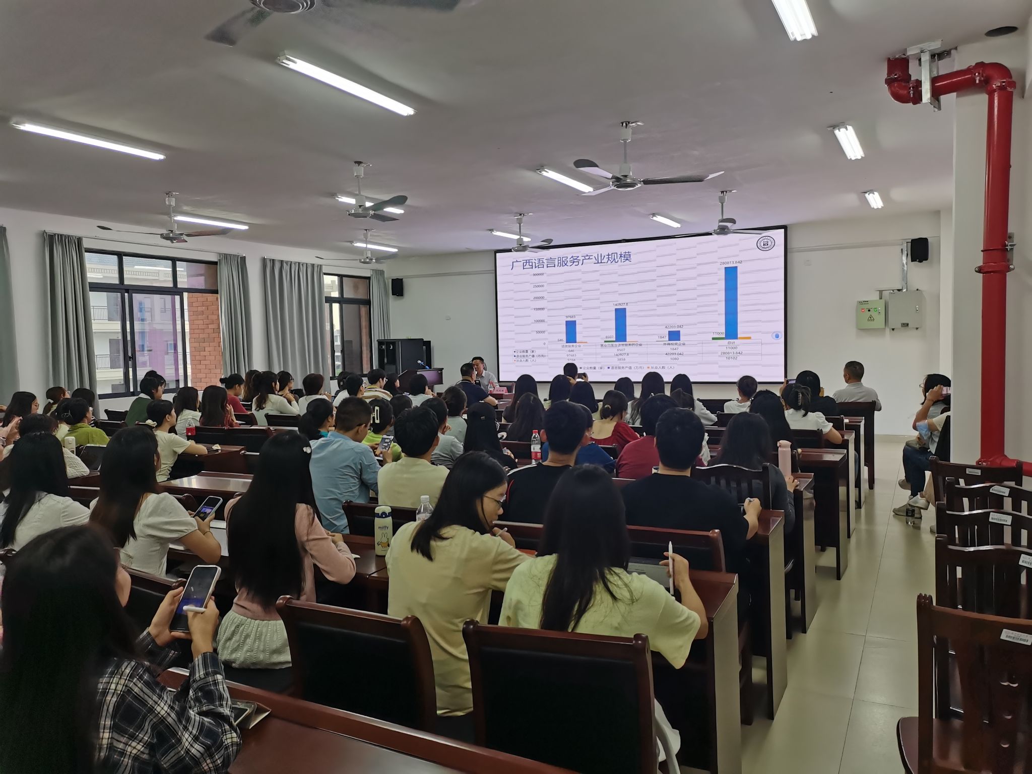 本次讲座于11月9日下午四点在武鸣外语学院515教室举办。讲座题为“语言服务产业与语言服务教育的现状与趋势”,王立非教授主要介绍了语言服务行业与学科在中国的发展。H图书馆