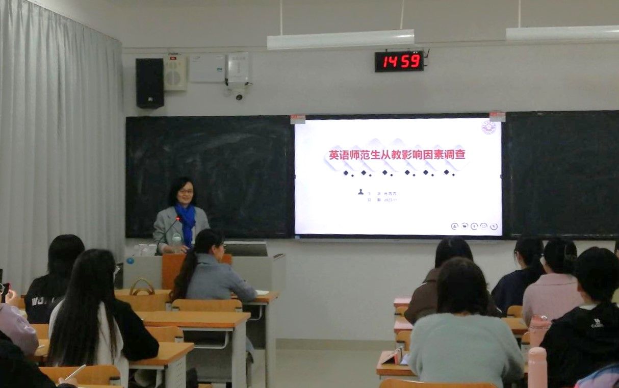 肖西西副教授在实验楼B座2栋203教室开展了题为“英语师范生从教影响因素调查”的专题学术沙龙。该学术沙龙为H图书馆