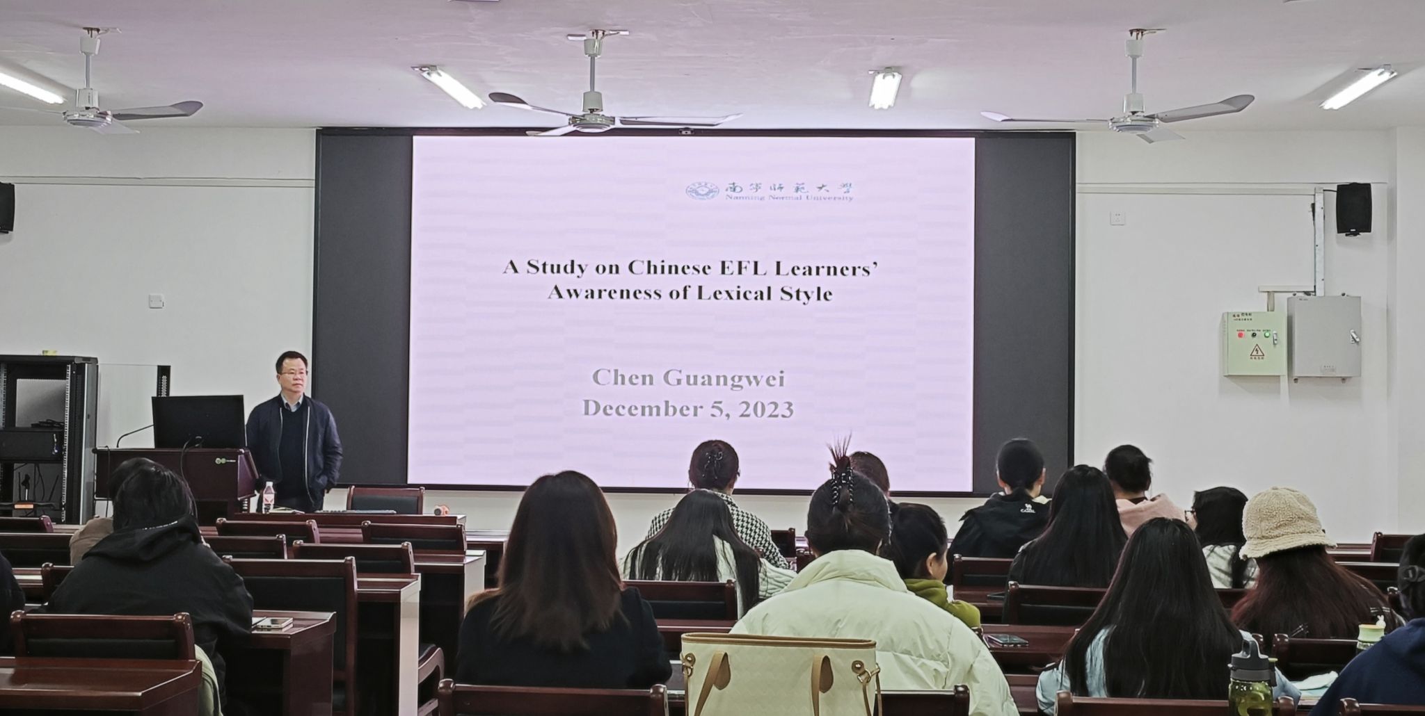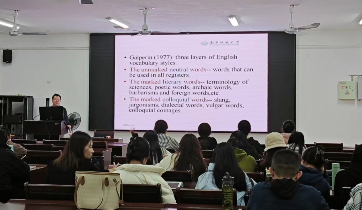 在武鸣校区实验楼1B-515教室举办了题为“A Study on Chinese EFL Learners’Awareness of Lexical Style”的专题学术讲座。本次讲座由H图书馆