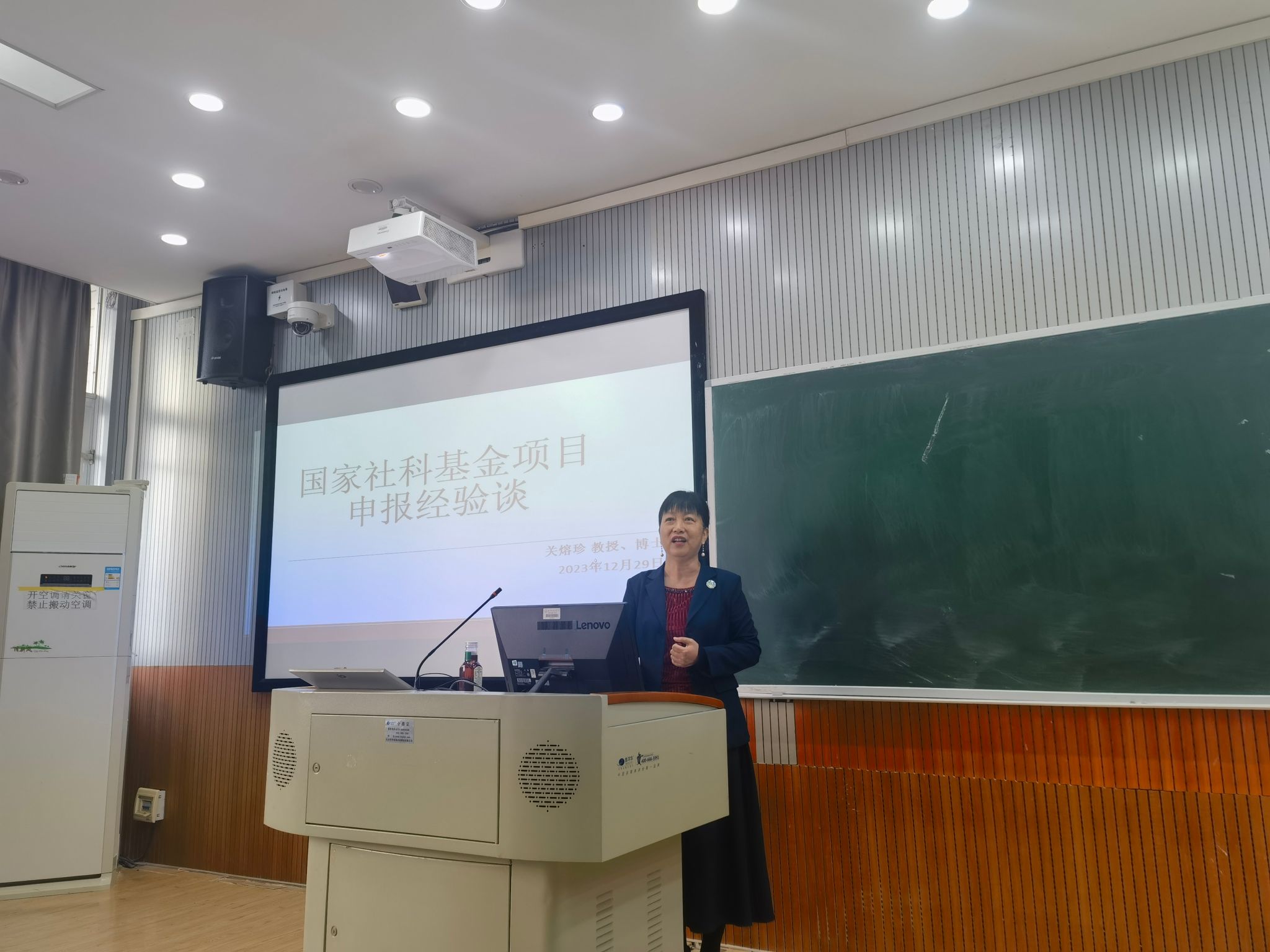 特邀杰出校友、广西大学国际学院书记关熔珍教授作了题为《如何做好国家社科基金申报工作》的精彩报告。报告于明秀校区文星楼401举行,由蒙岚副院长主持,H图书馆