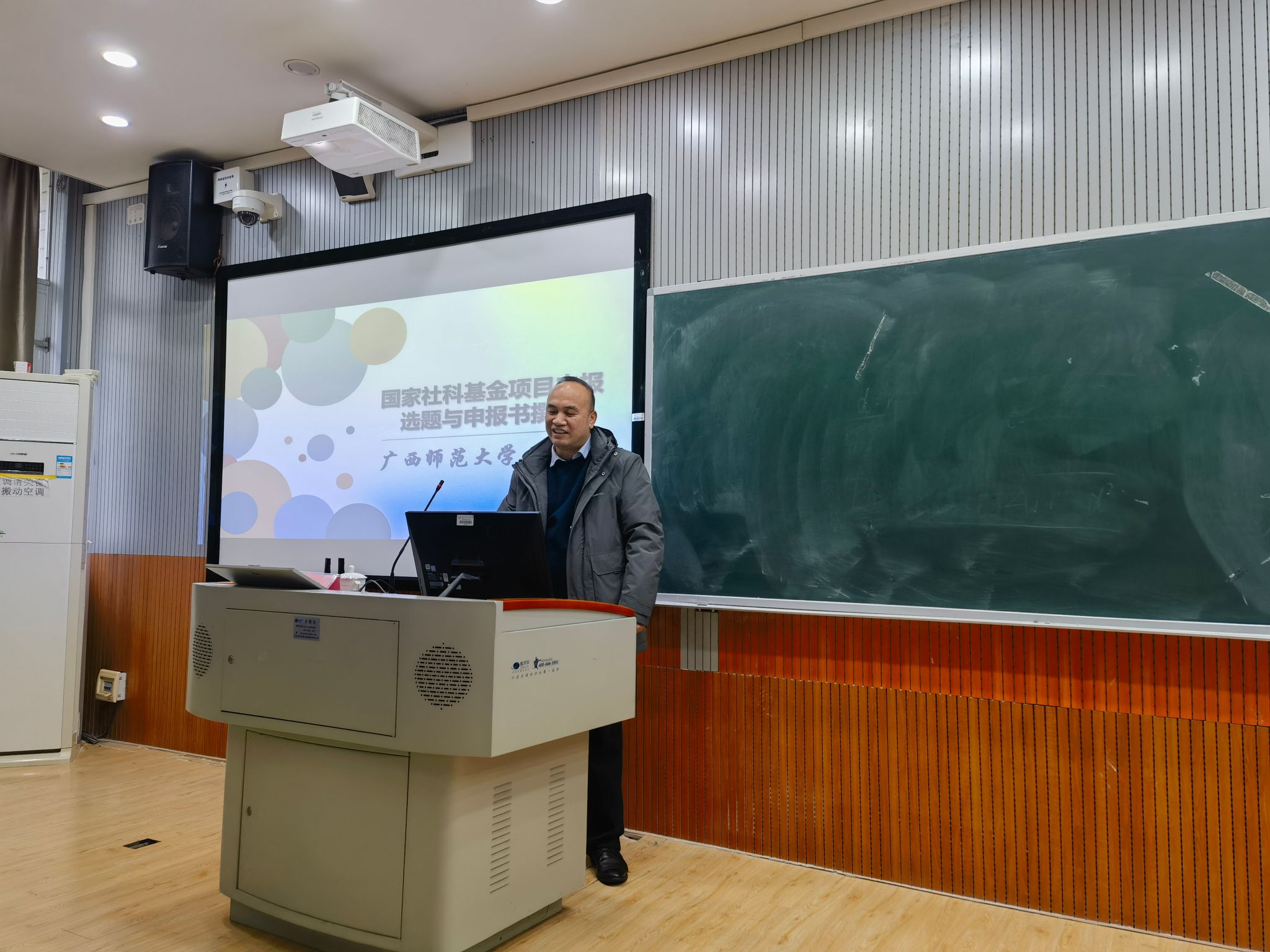 副院长、博士生导师刘明录教授作“国家社科基金项目选题原则与申报书撰写”的专题讲座。讲座由H图书馆