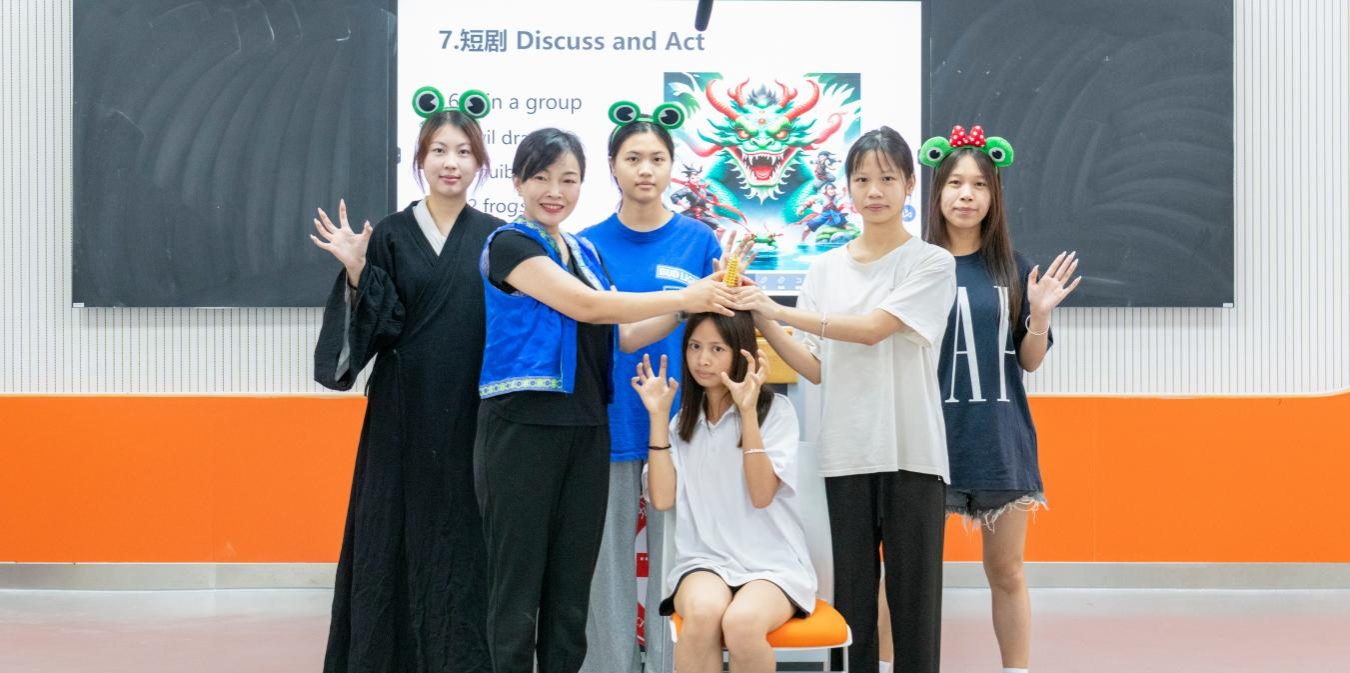 团队由副院长高飞雁副教授领衔,成员有翻译教研室主任樊毅以及南宁市华衡小学科研主任韦静。研讨交流前,团队与广西城市职业大学国际学院学生一起上演了一节以左江归龙斜塔为主题的英语教育戏剧课。参加现场观摩与交流研讨活动的有广西城市职业大学国际学院院长唐臣教授、英语教研室主任谢泞莲博士及英语教研室全体教师。
