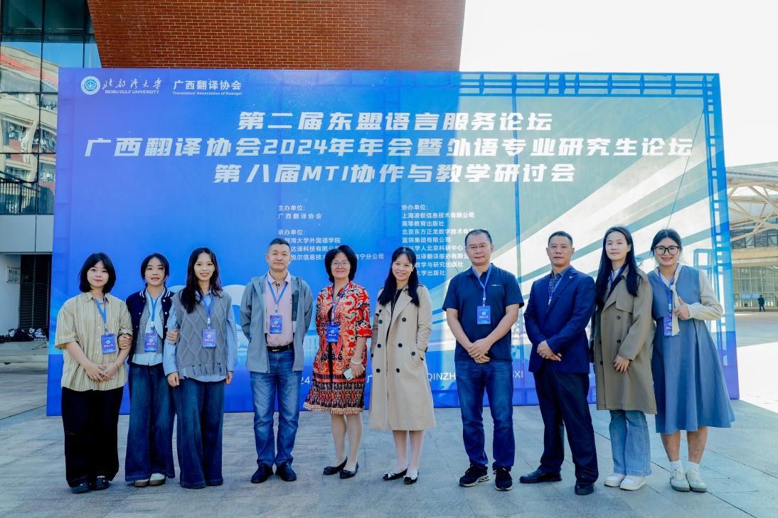 、广西达译科技有限公司与北京悦尔信息技术有限公司南宁分公司联合承办,上海凌极信息技术有限公司、高等教育出版社、北京东方正龙数字技术有限公司、蓝鸽集团有限公司、中兴学人北京科研中心、福州如译翻译服务有限公司、外语教学与研究出版社以及复旦大学出版社等单位协办。本次学术研讨会以“语言引领、技术赋能,推动外语学科发展和对外文化传播”为主题,汇聚了外语界和翻译界的专家、学者、研究生以及语言服务行业的同仁们,围绕东盟语言服务产业研究、人工智能与语言服务、中外译论前沿研究、人工智能背景下翻译学科建设及人才培养等多个议题,展开了全面而深入的探讨。