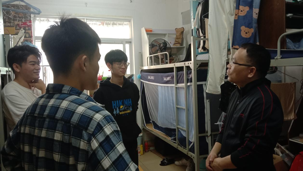 党委苏华书记、高飞雁副院长和辅导员邓梦芸老师走进学生寝室进行新学期走访检查工作。