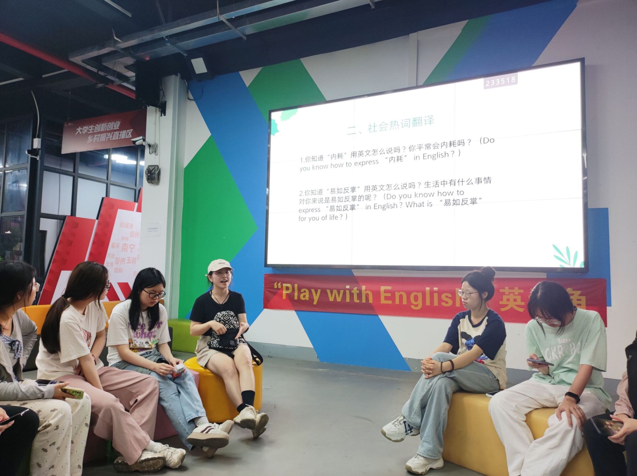 New Voice英语社每周五晚七点半至八点半在兰园食堂三楼分享交流区举办英语角活动,吸引众多学生踊跃参与。
