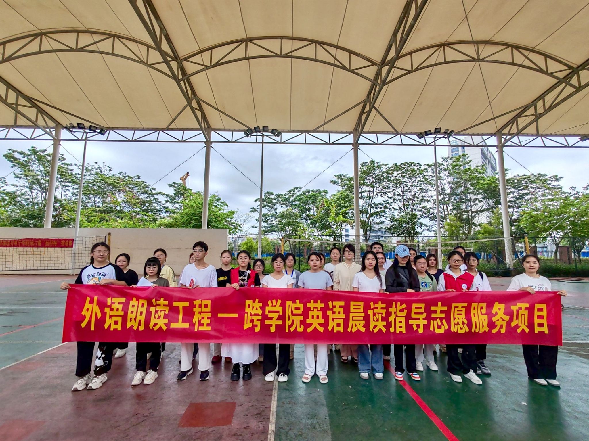 于5月19日至6月13日开展 “外语朗读工程——跨学院英语晨读指导志愿服务项目”活动,活动每周一至周五在桂园排球场、兰园体育馆旁等进行,累计服务超400人次。