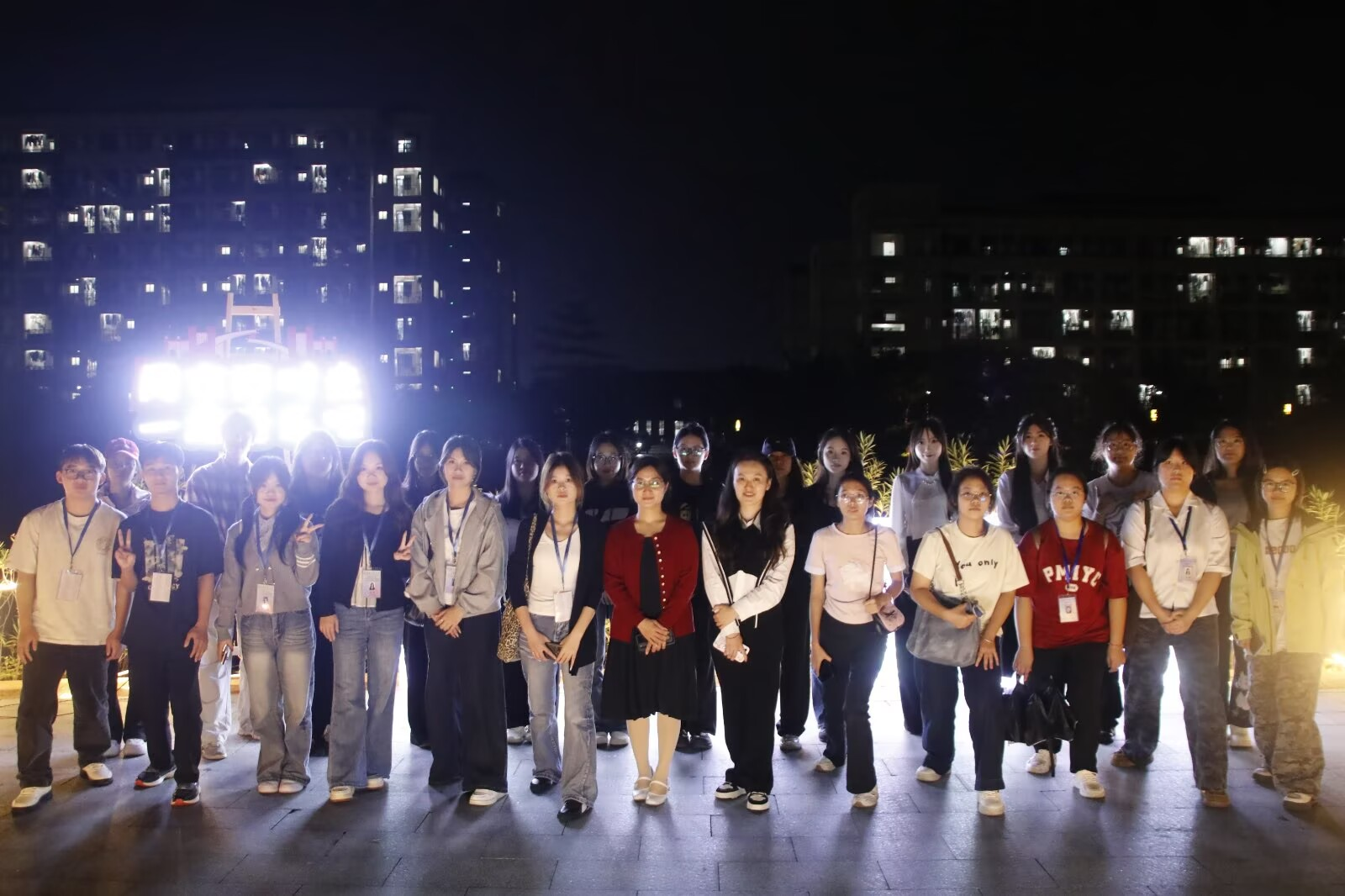 夜幕降临,广场上灯火璀璨。H图书馆