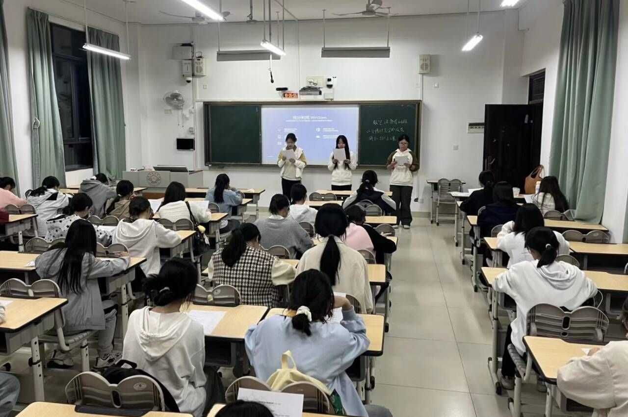 充分发挥自身专业优势,选拔出了一批专业素养扎实、责任心强的学生志愿者,并组织开展了系统培训。活动中,志愿者们分组带领参与学生进行30分钟的集中朗读与跟读训练。他们时刻关注每位同学的学习状态,通过随机抽检的方式及时纠正同学们的读音、发音问题,并适时给予鼓励,增强学生的信心。同学们手持工作人员精心准备的晚读材料,认真聆听志愿者的翻译与讲解,在文稿上圈画批注,努力将每一个句子读得清晰、准确。大家沉浸于英语学习的浓厚氛围中,教室里洋溢着温暖而鼓舞人心的学习气息。