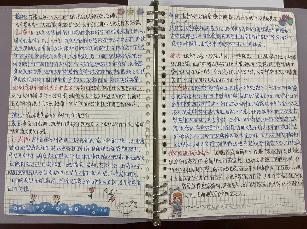 本次大赛以“书海撷珍萃,笔记著思章”为主题,历时近2个月,采用“线上打卡+线下评比”的结合形式,全方位展现外院学子热爱阅读、勤于思考、乐于积累的精神风貌。参赛作品内容丰富多元,覆盖中文、英语、日语等多种语言,不仅有经典名著的好词好句摘抄,也有深入独到的读后感想与点评。一份份字迹工整、排版精美的读书笔记,既承载着同学们沉浸式阅读的思考结晶,也彰显了外院学子严谨治学、笃学不倦的求学态度。