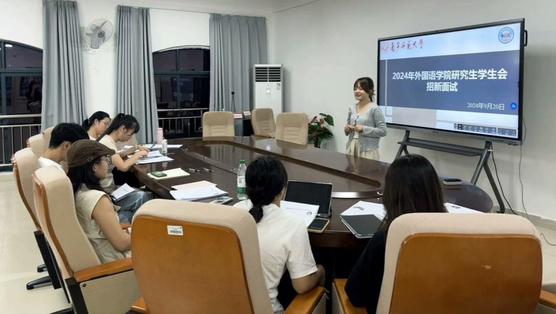 研究生学生会(外院研会)于武鸣校区实验楼1-B614举办了外院研会纳新面试活动。参与本次活动的有外院研会前任主席梅汉清、现任主席邓杰妹、纪检部部长杨明凤、组织部部长黄霞、秘书处秘书长补云桐、文体部部长罗岚莎、学习部部长谢冰洋以及24级意向参加纳新面试的外院研一新生。本次活动由研会主席邓杰妹主持。