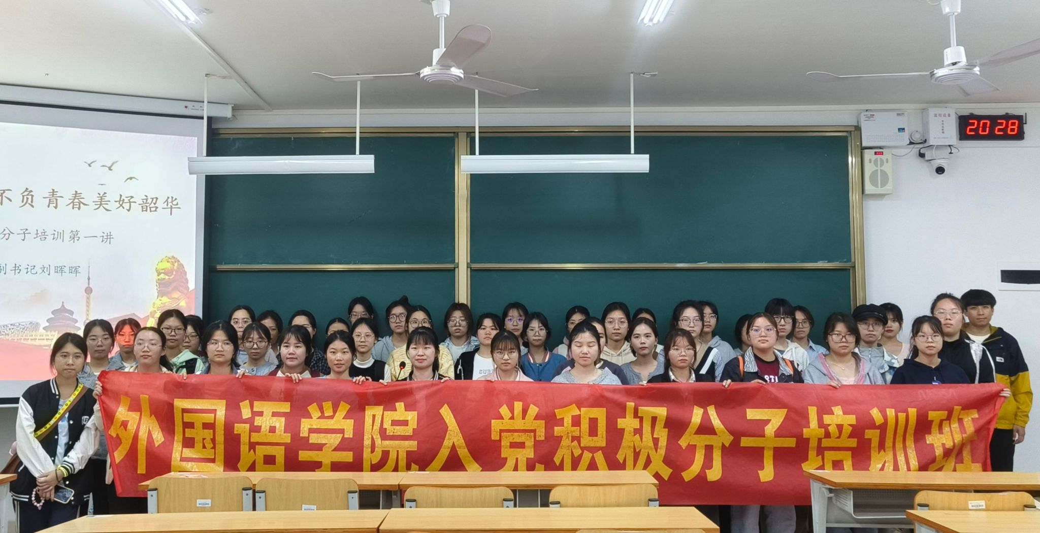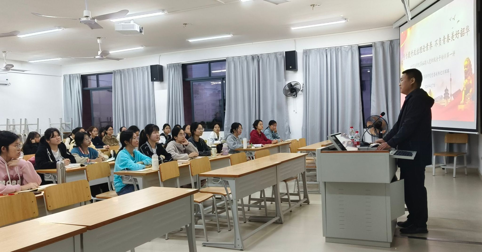 党委副书记刘晖晖主讲,本学期认定的47名入党积极分子参加了此次培训。