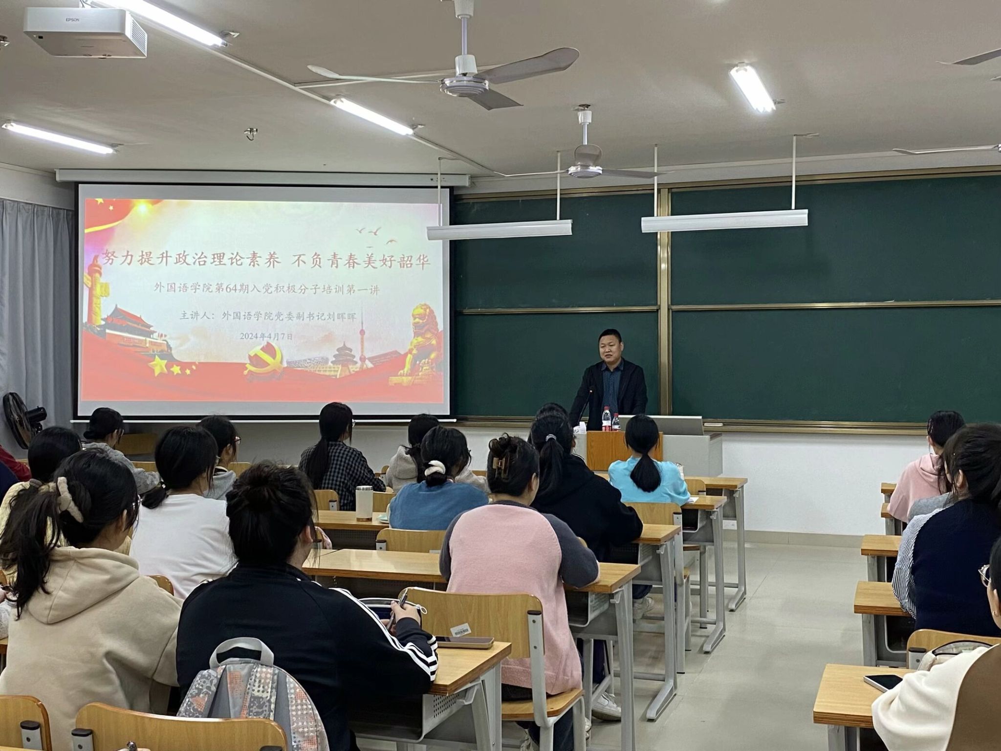 党委在实验楼2-C203教室举办第64期入党积极分子培训会第一讲。本次培训会主题为“努力提升政治理论素养,不负青春美好韶华”,由H图书馆