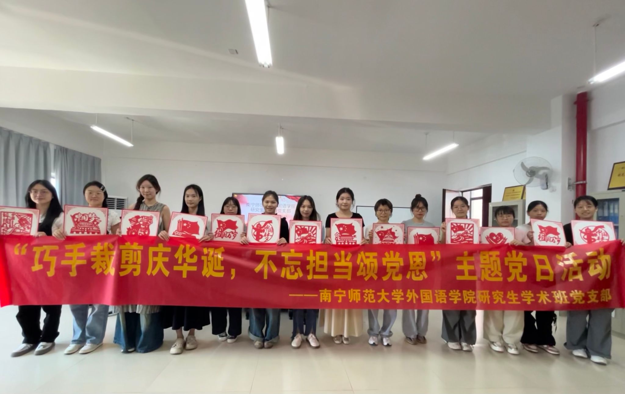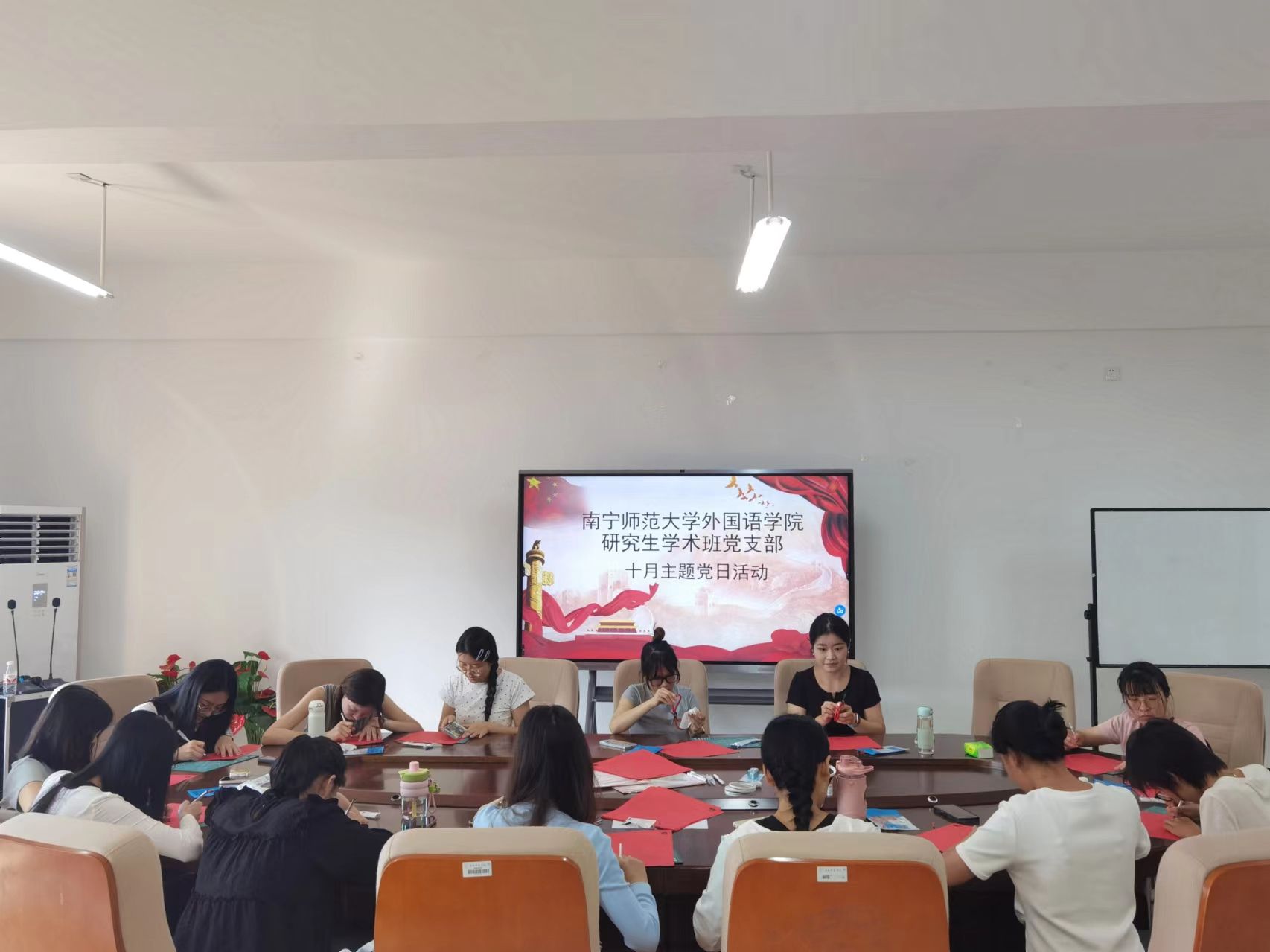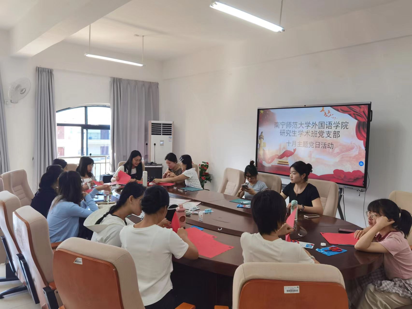 研究生学术班党支部在实验楼1B614党员活动室举行“巧手裁剪庆华诞,不忘担当颂党恩”主题党日活动,此次活动由支部书记马旭冉主持,学术班党支部各位党员同志参与。