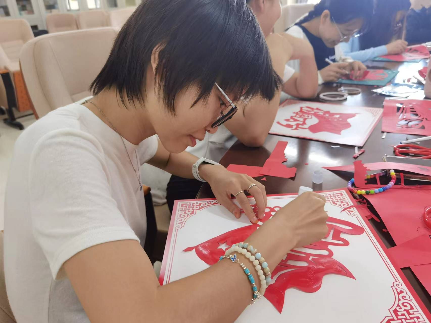 活动现场,党员们齐聚一堂,共同参与剪纸创作。大家手持剪刀和刻刀,在红纸上勾勒出一幅幅精美的图案。每一幅作品都凝聚了党员们的心血和智慧,也寄托了大家对党和国家的无限忠诚和热爱。党员们通过交流心得、分享感悟,加深了对党的认识和理解。他们纷纷表示,通过这次活动,更加深刻地感受到了党和国家的伟大和崇高,也更加坚定了自己的信仰和追求。