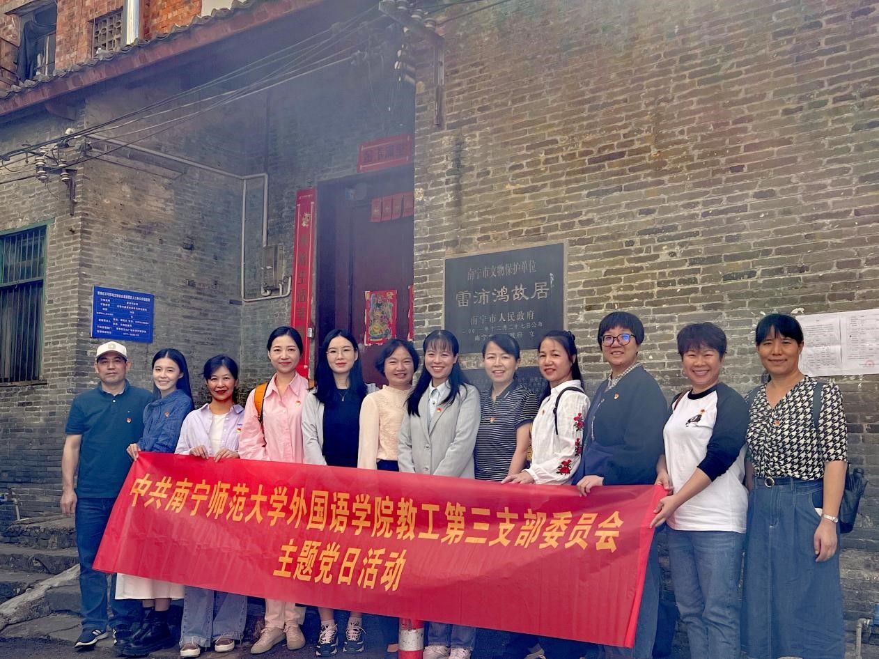 教工第三党支部全体党员在支部书记覃美静的带领下,前往雷经天故居与雷沛鸿故居开展主题党日活动。