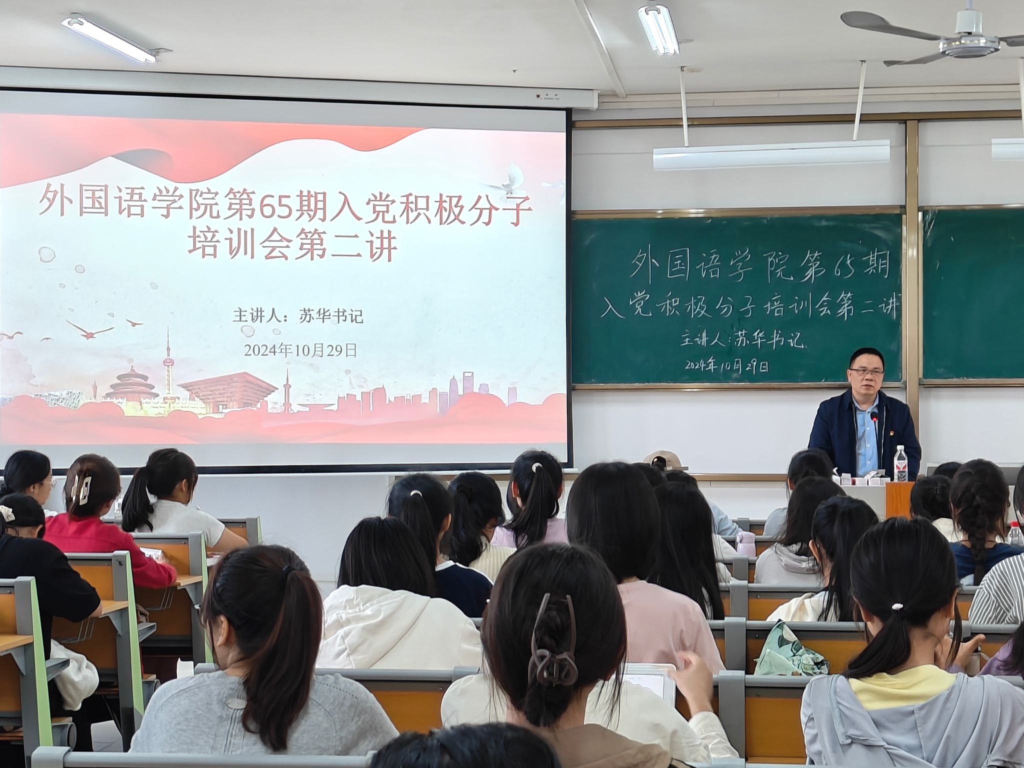党委书记苏华主讲,本学期认定的125名入党积极分子参加了此次培训。