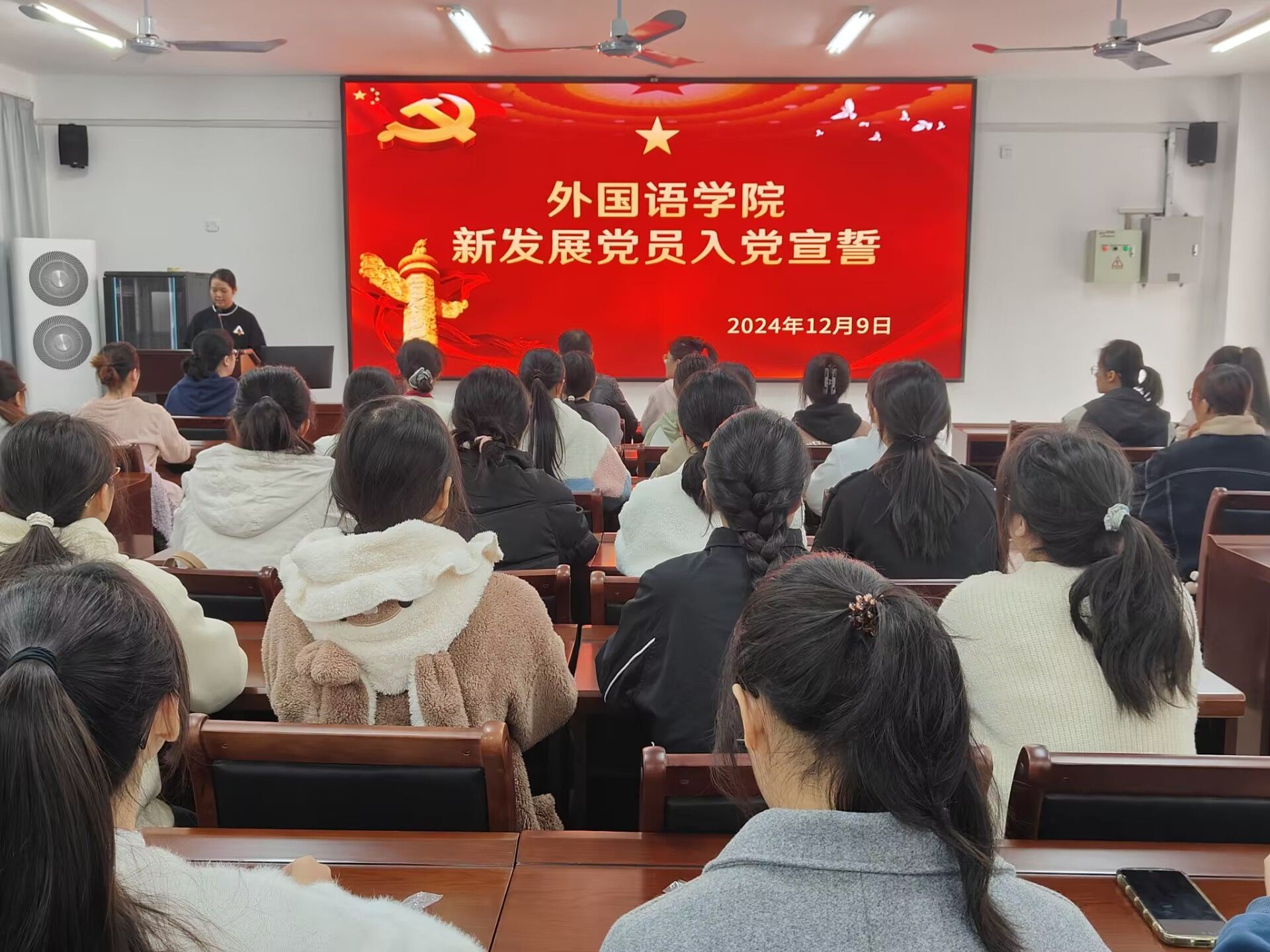 党委苏华书记、部分正式党员以及2024年下半年新发展的72名党员参加了本次入党宣誓仪式,会议由党务助理莫晓滢主持。