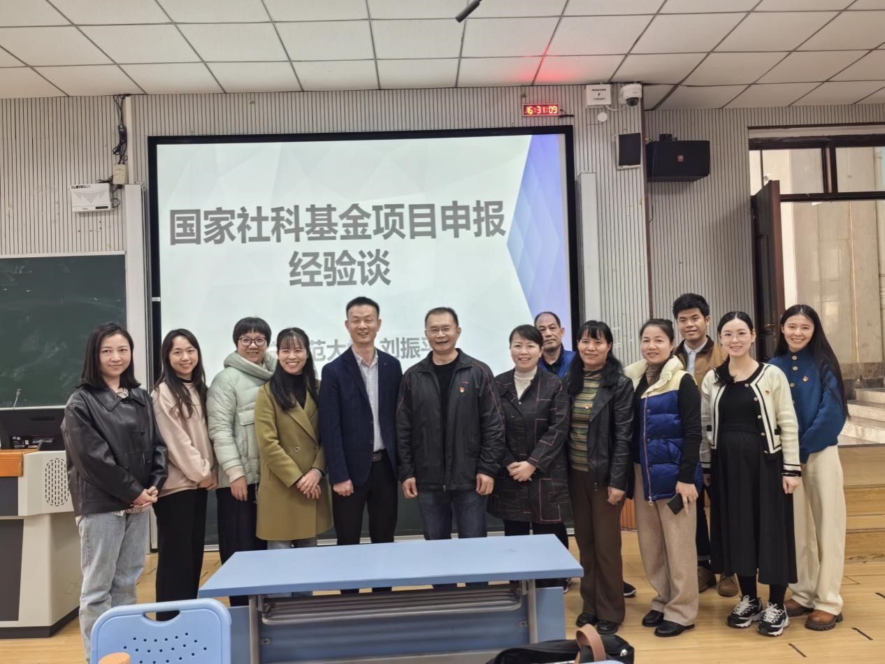 讲座伊始,教工第三党支部书记覃美静首先对刘振平教授的到来表示热烈欢迎,并强调了本次讲座对于提升支部党员教学科研能力、促进党建与教学科研工作深度融合的重要意义。随后,刘教授围绕国家社科基金项目的申报工作,从七个关键方面进行了全面而深入的讲解。