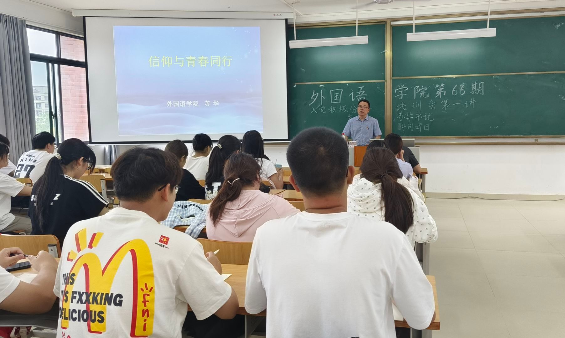 党委苏华书记主讲,本学期认定的46名入党积极分子参加了此次培训。