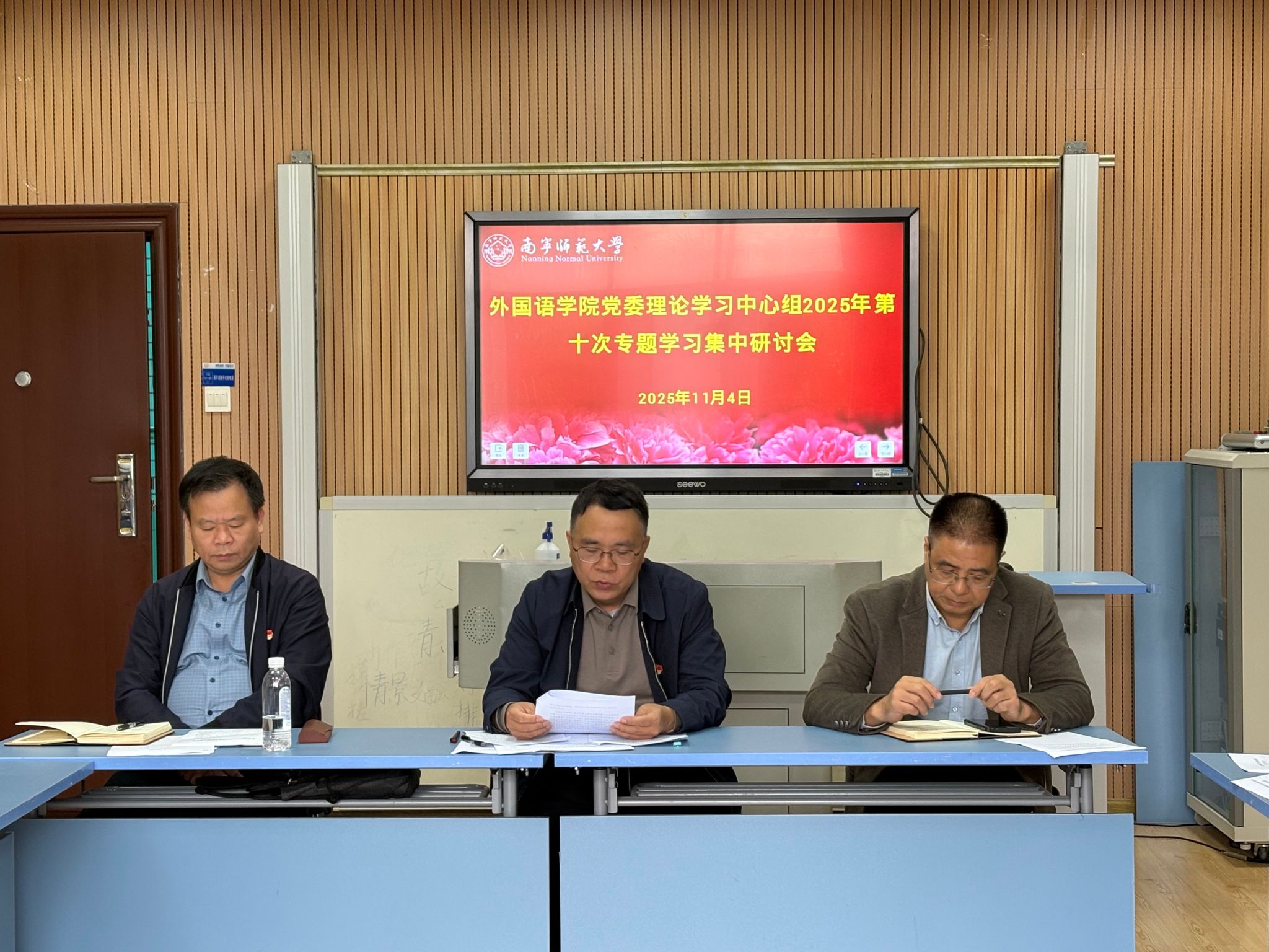 党委理论学习中心组召开本年度第十次专题学习集中研讨会。会议由学院党委书记苏华主持,学院党委委员、纪委委员及各党支部书记参会,学校党委常委、校工会常务副主席陈名贤巡听旁听了本次会议。