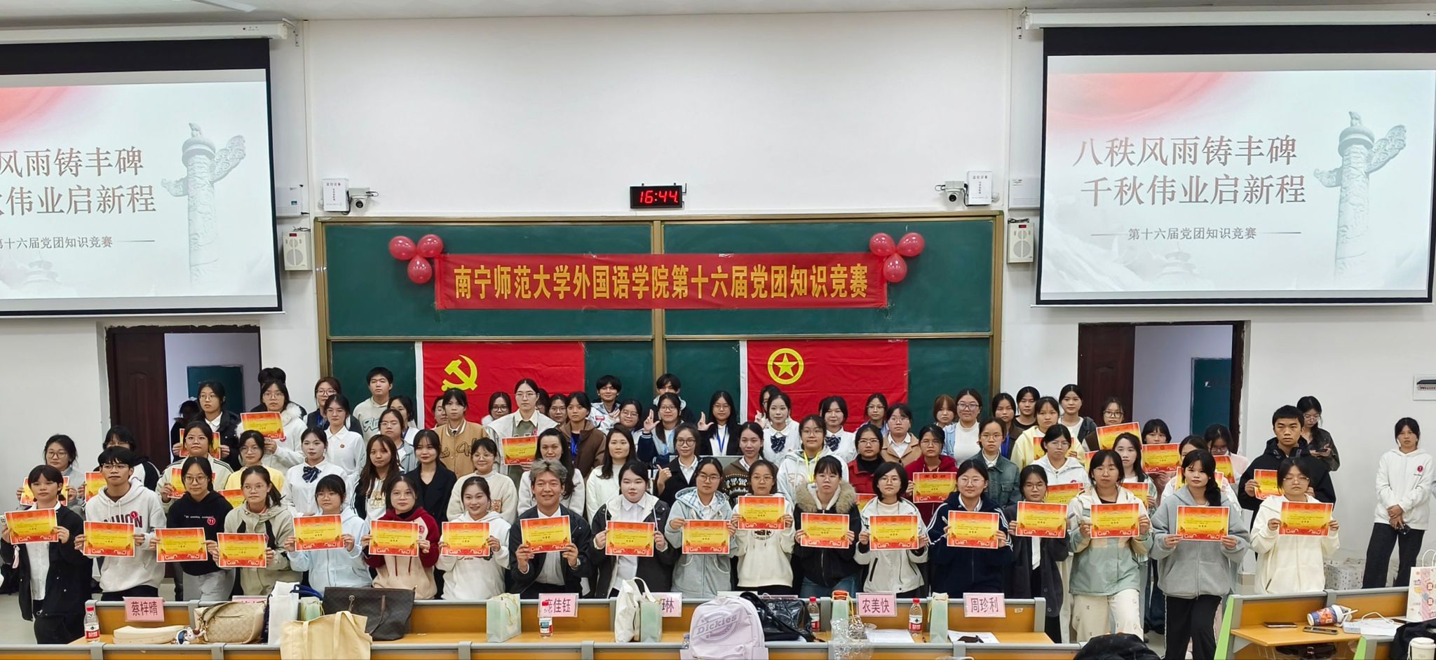于武鸣校区实验楼1B-113教室举办以“八秩风雨铸丰碑,千秋伟业启新程”为主题的第十六届党团知识竞赛。H图书馆