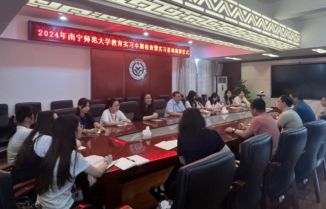 实习老师在四职校的实习活动开展中期检查工作。两校领导及老师齐聚一堂,共话实习老师阶段性成果与两校合作前景。