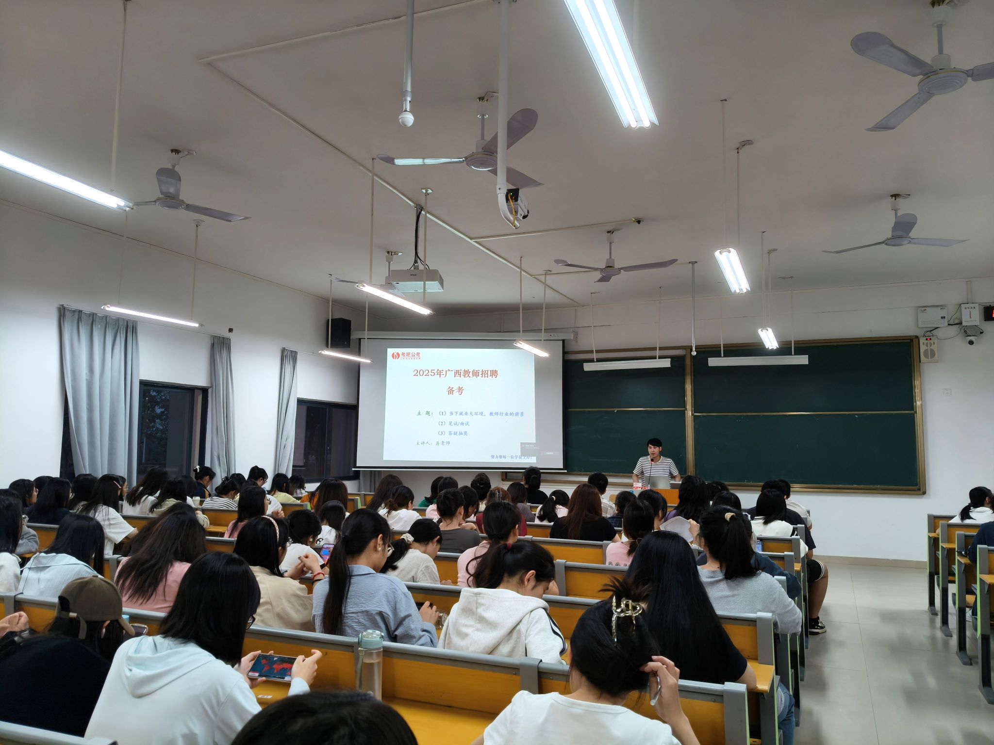 讲座伊始,蒋老师结合当下就业形势,深度剖析了教师招聘的现状与趋势,让同学们对行业动态有了清晰的认识。笔试指导环节中,老师详细讲解了各学科笔试的重难点,分享了实用的备考策略与答题技巧,从知识点梳理到模拟题演练,为同学们建构起完备的笔试知识体系。