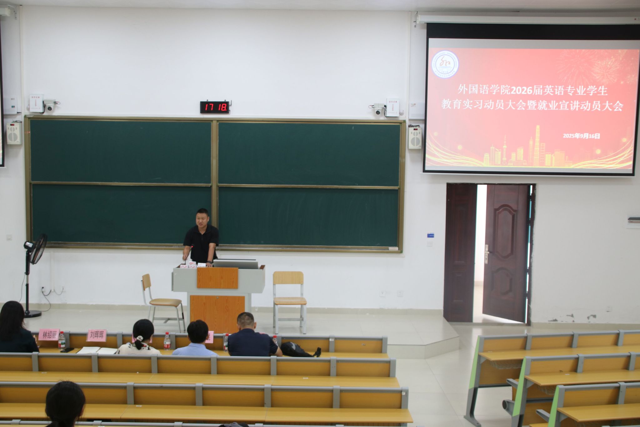 于9月16日在武鸣校区实验楼1-B113教室召开2026届教育实习动员大会暨就业宣讲动员大会。本次大会由教师教育教研室主任林绍丽老师主持,H图书馆