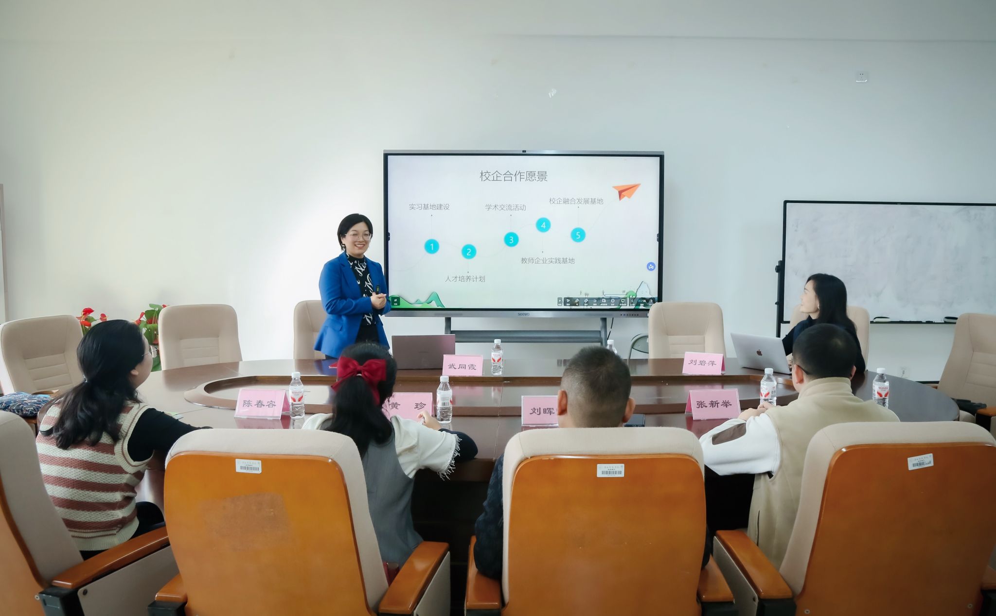 、旅游与文化学院与广西相和里酒店管理有限公司在武鸣校区实验楼1B-614顺利举行校企合作交流座谈会。双方围绕深化校企合作、协同育人等议题展开深入交流与探讨。广西相和里酒店管理有限公司总经理武同霞、总经理助理刘碧萍,H图书馆