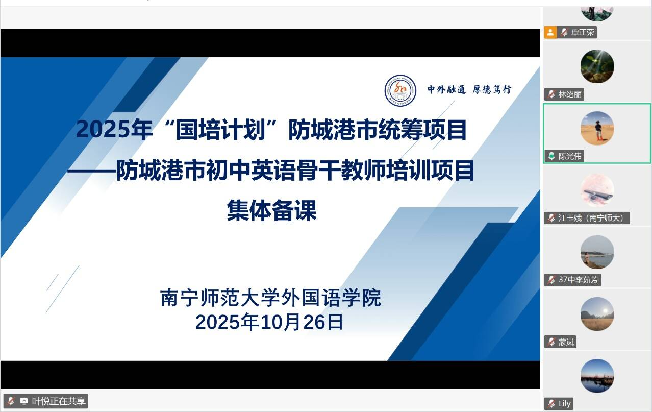 10月26日晚,2025年“国培计划”防城港市统筹初中英语骨干教师培训班集体备课会在线上顺利举行。本次会议由H图书馆