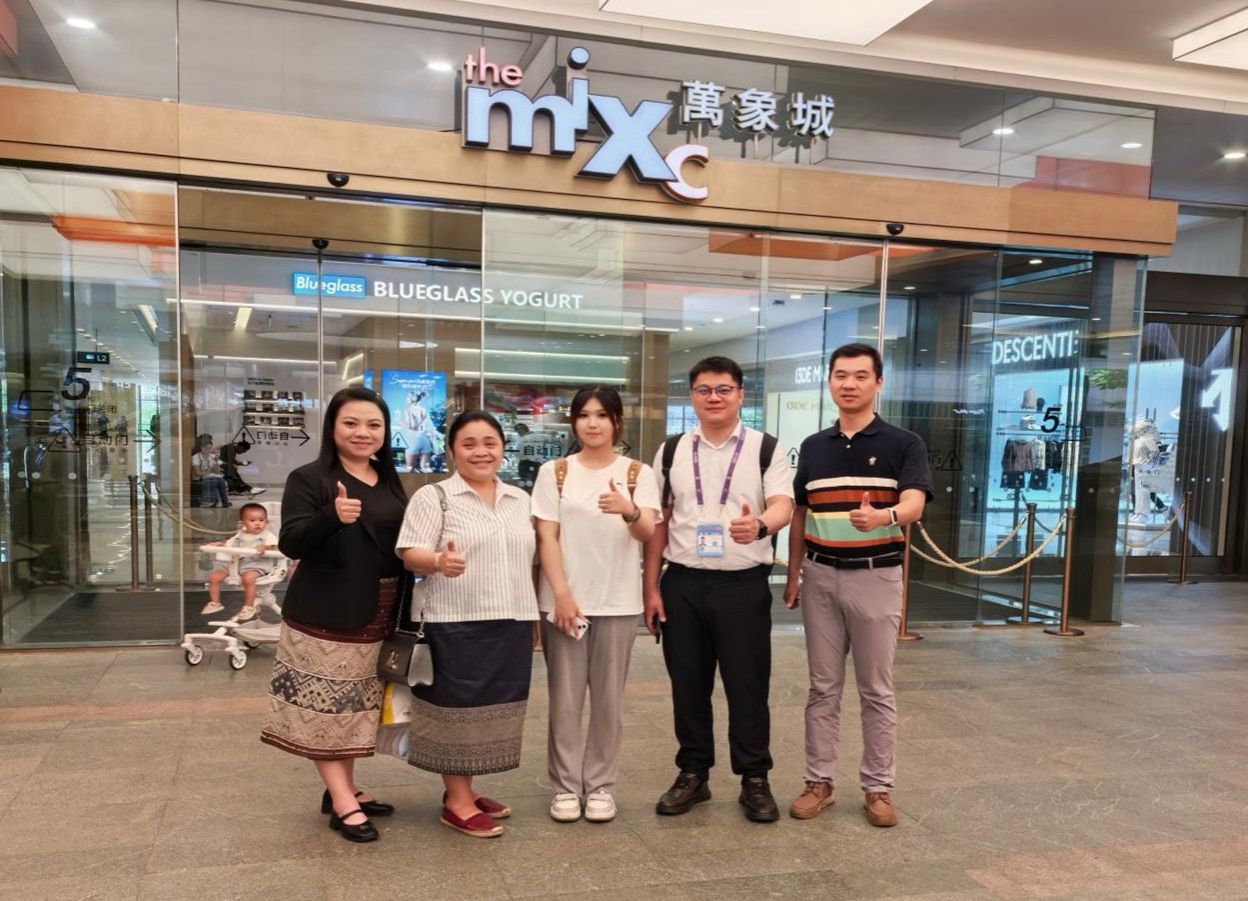 (王玉婷同学[中间]为老挝技术与通信部技术促进与转移中心主任一行提供陪同口译服务)
